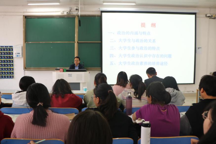 唐国战立足实际,详细阐述了政治的内涵与特点、大学生与政治的关系、大学生政治认识中存在的问题、大学生参与政治的特点以及大学生政治素养的培养途径五方面内容。他详细阐述政治的时代性、阶级性、权力性、层次性等方面特点,针对“没关系”、“没用处”、“没问题”、“有偏见”等问题进行剖析引导。他希望,共青团员应在日常学习生活中加强政治理论和时事政策的学习,培养坚定、敏锐、扎实的政治素质,为今后的成长成才打下良好基础。(ok138cn太阳集团529 赵婷婷/供稿 唐国战/审核)