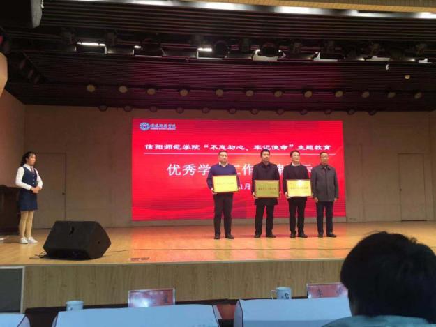 11月28号下午,信阳师范学院在理科楼报告厅隆重召开师范专业认证校风建设动员暨优秀学生工作品牌展示会。经各位专家评委评定,我院“南湖”系列育人体系荣获信阳师范学院“优秀学生工作品牌”。