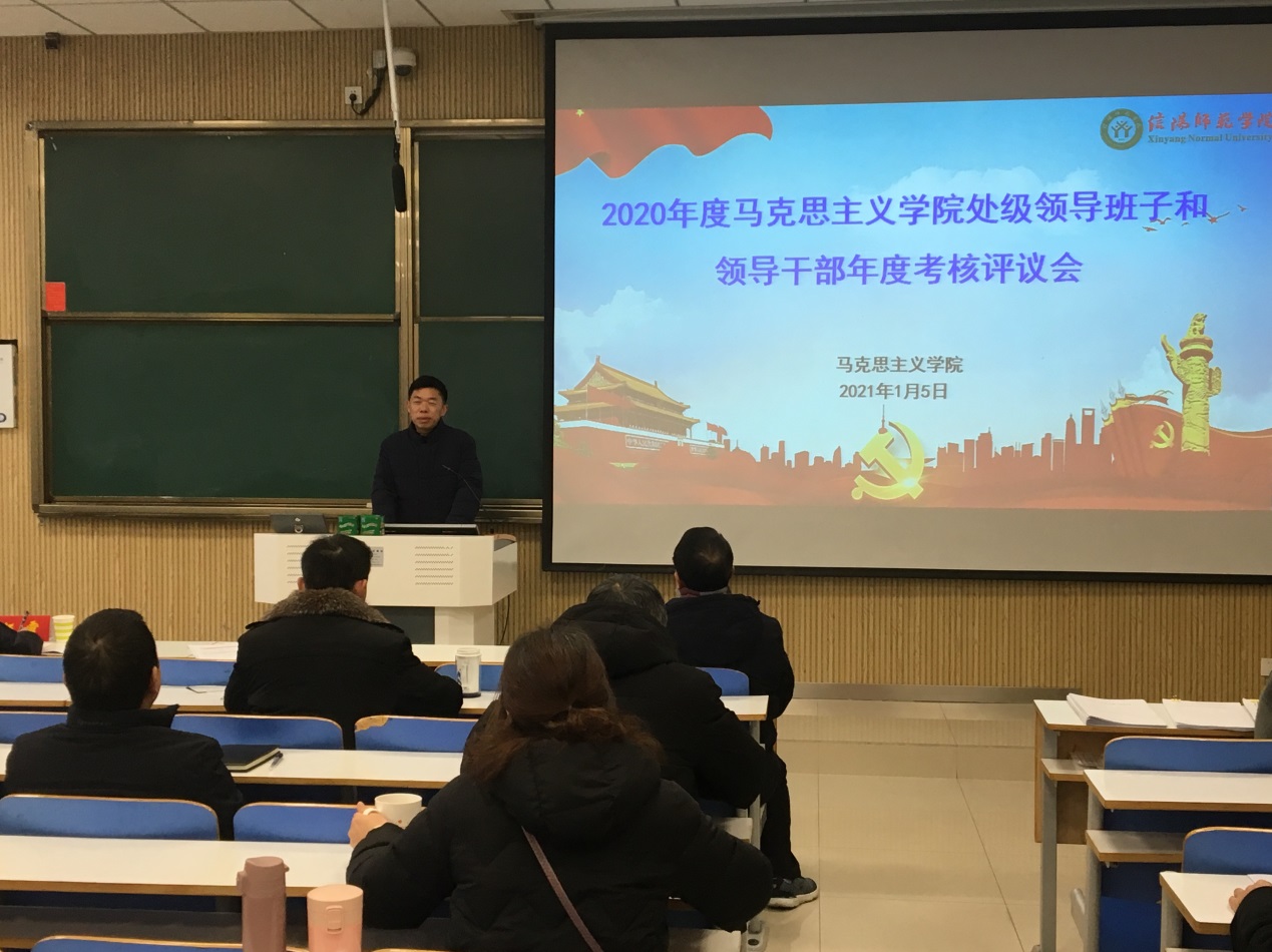 1月5日下午,ok138cn太阳集团529在社科楼515召开处级领导班子和领导干部2020年度述职考评大会。学校第三考核组组长、党办主任林兴岚和考核组成员、人事处副处长汪霞出席会议,我院处级领导班子成员与全体教职工参加会议。会议由学院党委书记唐国战主持。