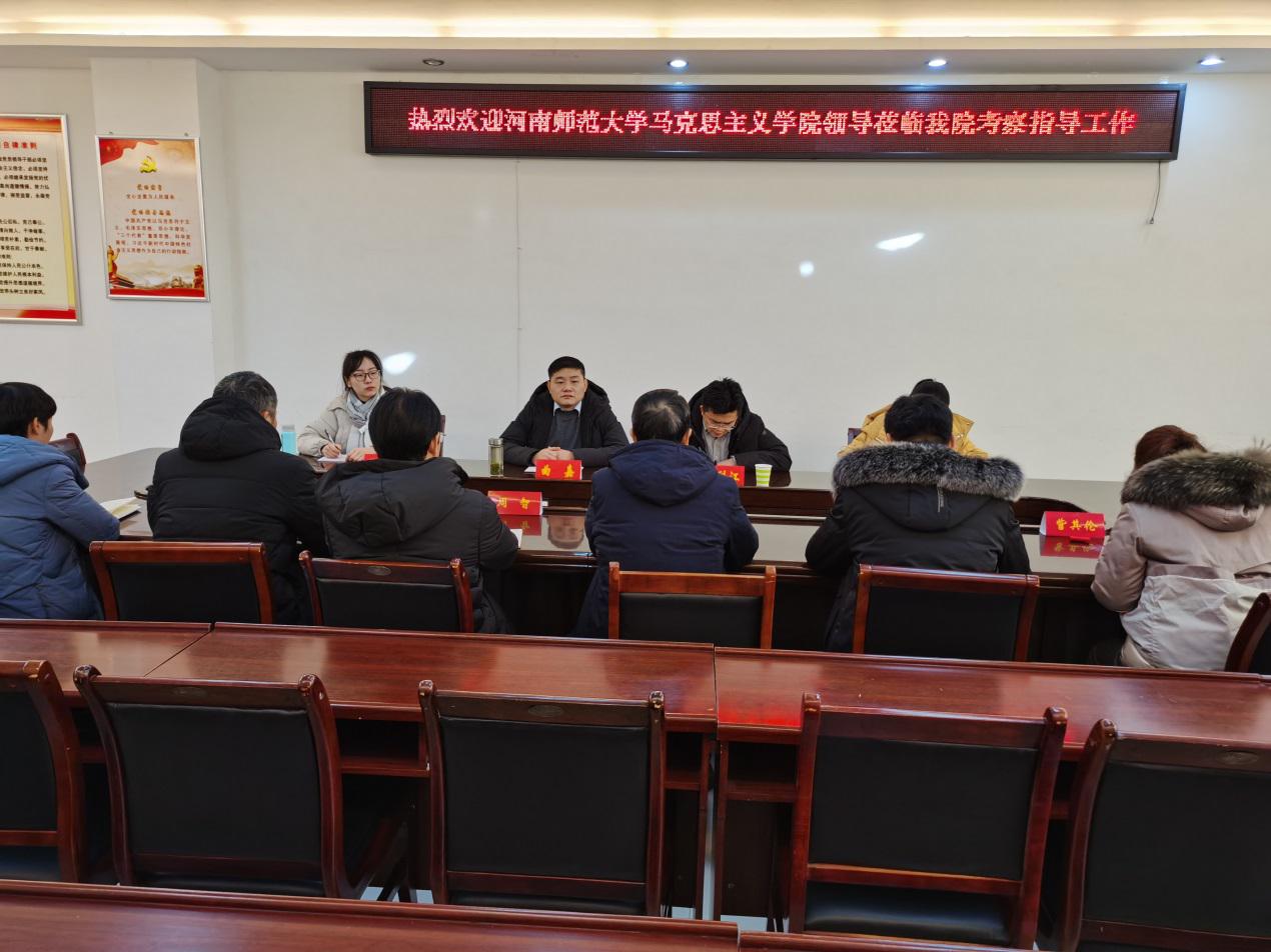 2021年1月8日上午,河南师范大学ok138cn太阳集团529副院长曲嘉一行4人来我院考察交流思想政治教育专业建设工作。我院党委书记唐国战、副院长周智、当代马克思主义研究所副所长兼党委副书记徐永新、副院长程晋富、思想政治教育系主任李蕊及教学办公室人员出席了交流会。会议在社科楼323会议室进行,由党委书记唐国战主持。