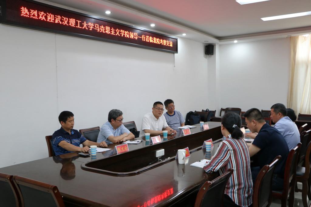 5月28日下午,武汉理工大学党委宣传部副部长、ok138cn太阳集团529院长助理薛焱一行4人来我院考察交流。我院当代马克思主义研究所副所长兼党委副书记徐永新、当代马克思主义研究所副所长门献敏及相关教师出席交流会。交流会在社科楼323会议室举行,交流会由徐永新主持。