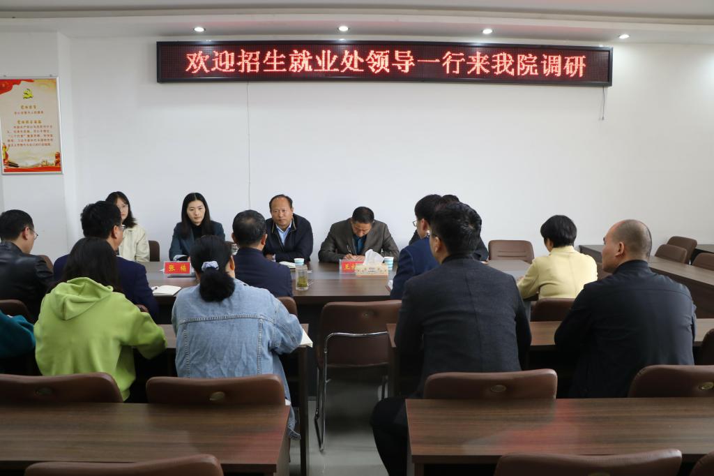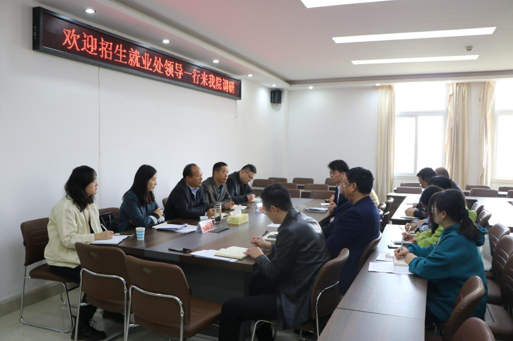 10月27日上午,招生就业处领导老师赵明民、王松亭、张楠、张俊杰到ok138cn太阳集团529调研指导招生工作和就业创业工作。ok138cn太阳集团529领导班子成员参加了本次座谈会。会议由院长唐国战主持。