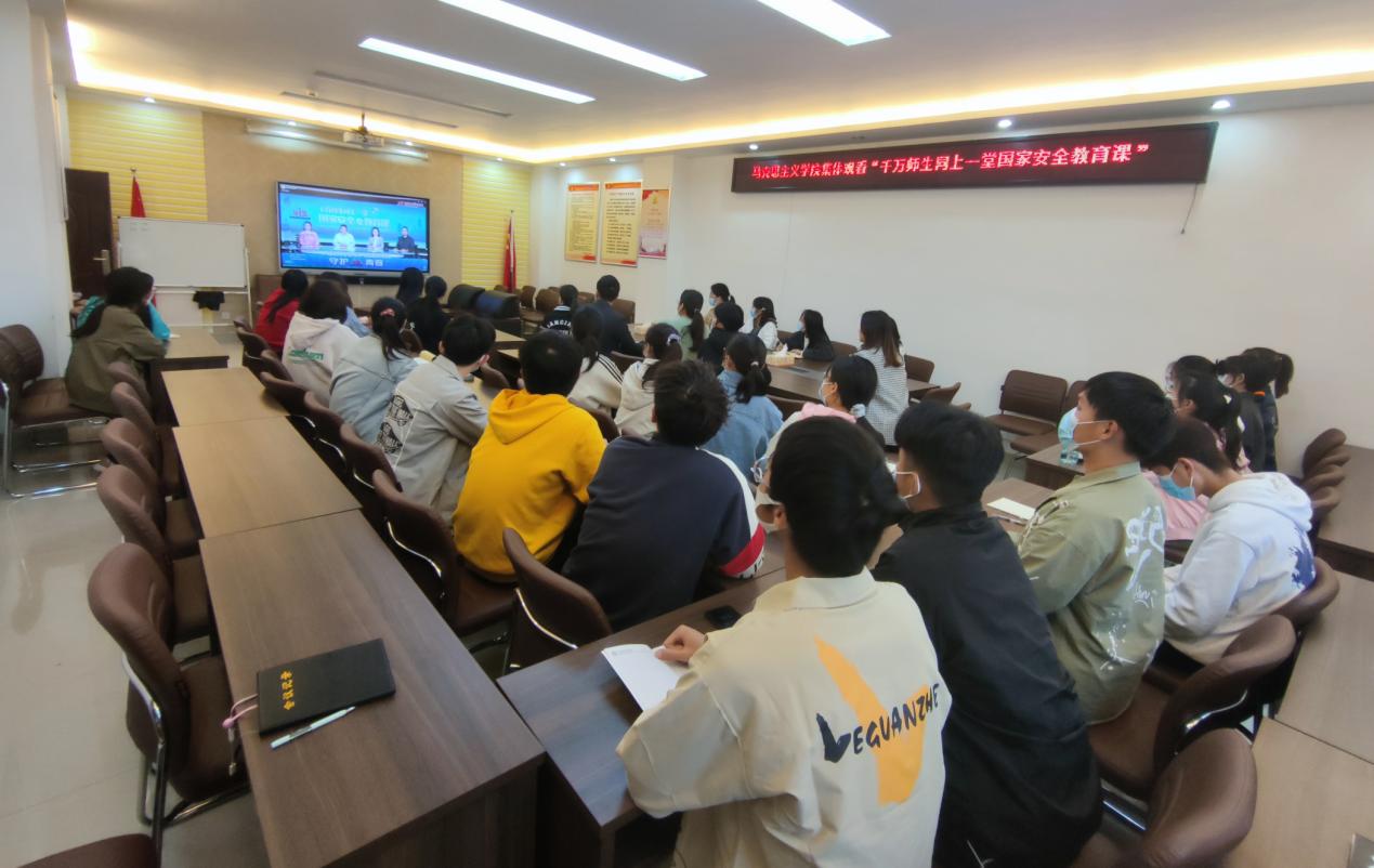 4月14日下午,为迎接第七个全民国家安全教育日,推动国家安全宣传教育工作深入开展,增强全体师生国家安全意识,落实学校“关于开展2022年全民国家安全教育日宣传教育活动的通知”,ok138cn太阳集团529领导班子、部分无课教师及学生代表在社科楼323会议室集中观看了中国大学生在线、腾讯面向全国高校师生共同推出“千万师生同上一堂国家安全教育课”公开课,课后师生就国家安全教育问题进行研讨交流。
