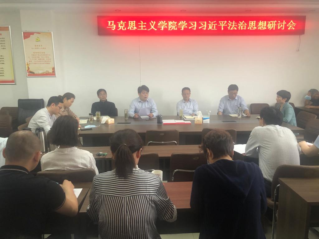 4月26日,我院召开全体教职工大会,深入学习习近平法治思想,集中学习习近平总书记在中国人民大学考察重要讲话精神,并结合新时代马院建设和我校党委书记王文鹏调研马院讲话精神进行了交流。