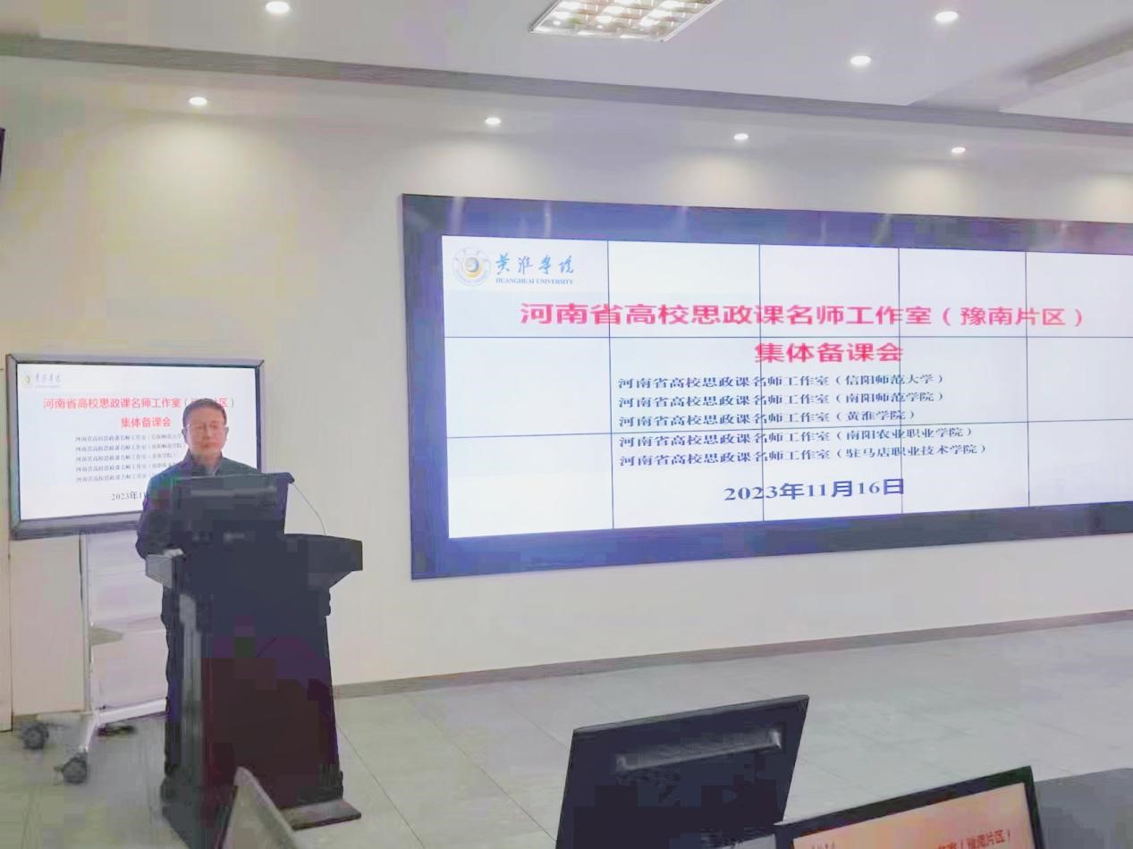 为贯彻落实习近平新时代中国特色社会主义思想和党的二十大精神,11月16日上午,河南省高校思政课名师工作室(ok138cn太阳集团)、河南省高校思政课名师工作室(南阳师范学院)、河南省高校思政课名师工作室(黄淮学院)、河南省高校思政课名师工作室(南阳农业职业学院)、河南省高校思政课名师工作室(驻马店职业技术学院)联合组织在黄淮学院、驻马店职业技术学院召开思政课集体备课会。ok138cn太阳集团529院长唐国战带队参加了本次活动。