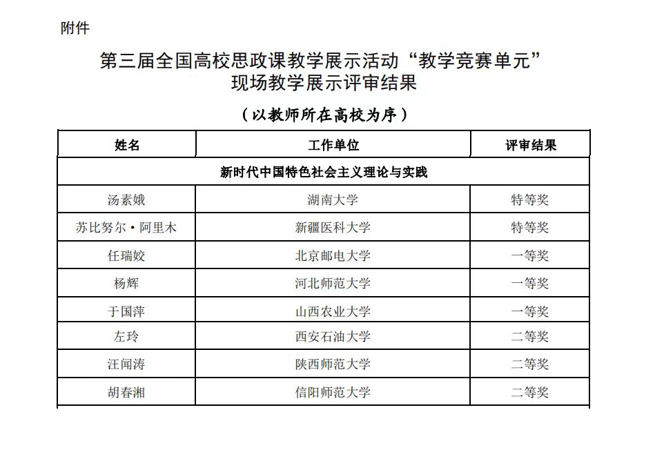 我院教师在第三届全国高校思政课教学展示活动中荣获佳绩