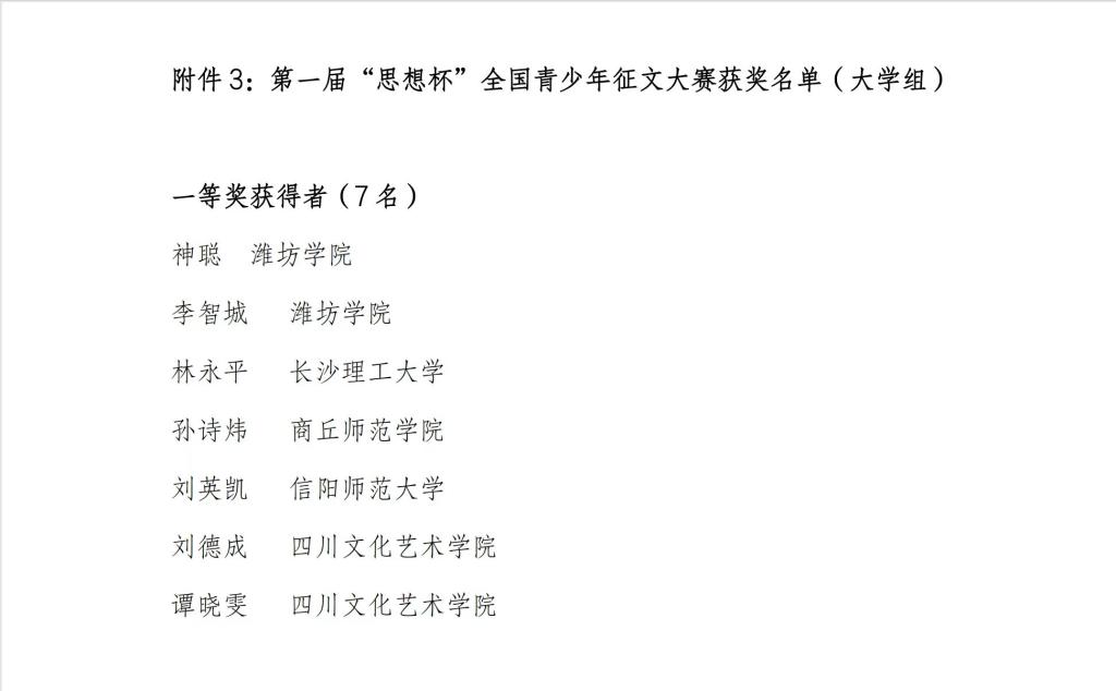 据了解,第一届“思想杯”全国青少年征文大赛由河南省青少年作家协会发起,旨在挖掘和传承中华优秀传统文化,培养青少年的历史文化素养和文学创作能力,同时为优秀文学人才培养和选拔搭建平台。大赛共收到参赛作品 2180 篇,评选出 1411 篇优秀作品,并决出了各奖项归属。(ok138cn太阳集团529 贾傲雪 薛蒙蒙/供稿 王超 陶青青/审核)
