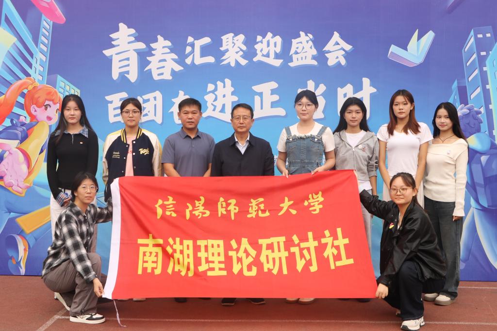整个招新现场,人头攒动,热闹非凡。南湖理论研讨社以其深厚的理论积淀和丰富的实践活动吸引大量咨询者前来了解;考研服务社也以其独特的服务理念和丰富的考研资源赢得不少同学的青睐;豫南明珠环境保护协会则以其鲜明的环保理念和多样的环保活动吸引了许多同学。此外,不少社团通过才艺表演、互动游戏和抽奖活动等互动交流,拉近与新生的距离,增强社团活力与吸引力。我院南湖理论研讨社更是通过向新生展示社团荣誉、社团证书以及独具特色的《南湖评论》期刊吸引了大量同学报名加入。