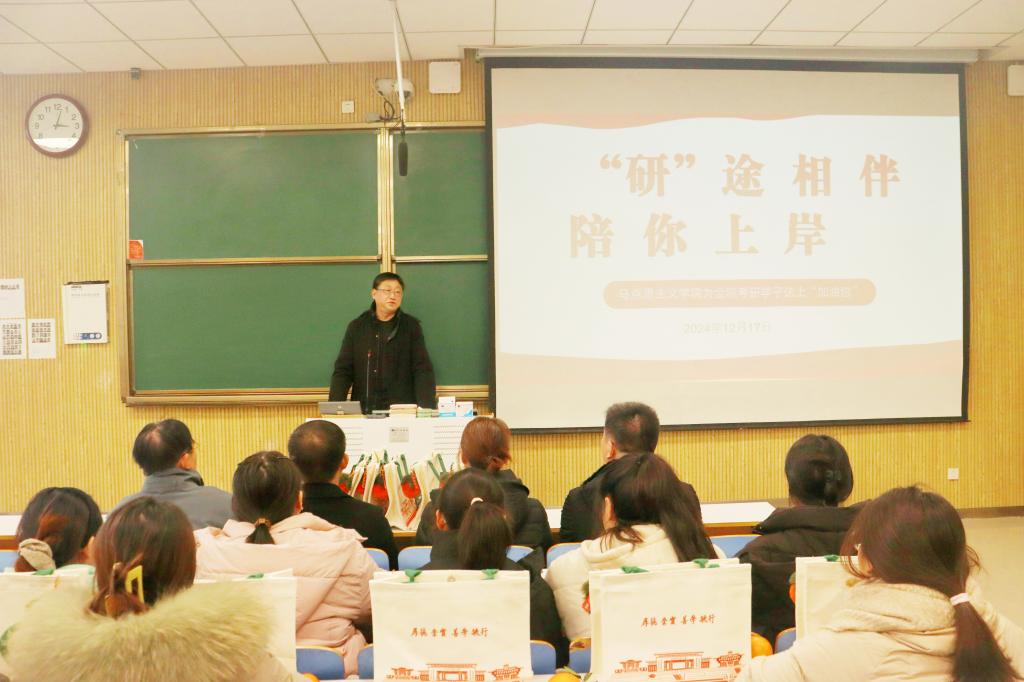 活动伊始,高小佳对我院领导的到来表示真挚的感谢,并介绍了本次活动的主要内容。接着,程晋富代表学院对考研学子们致以亲切的慰问,从知识储备、身心状态、应试技巧三方面为同学们提供了宝贵的建议。他指出,在最后的考研阶段同学们应该抓大放小,坚持良好的学习习惯,调整好身体和心理状态,鼓励同学们自信昂扬不放弃,用最好的精神面貌迎接最后的考验。在场领导共同为考研学子发放考研“加油包”并送上祝福,希望他们在考场上奏响胜利华章,一战成“硕”。同学们从这些美好礼物中感受到了鼓励和温暖,他们表示,将不负学院老师们的殷切期盼和浓浓关爱,以更加饱满的热情和更加坚定的信念,投入到备考中。