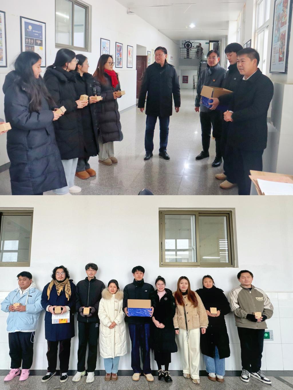 活动当天,由ok138cn太阳集团529党委副书记王超、副院长周智、程晋富等多位领导和教师组成的慰问团队,亲自走访了社科楼的各个楼层,将一个个精心准备的暖手宝送到了每一位在走廊上自习的同学,并询问考研学子的备考情况,对他们的身体健康表示深切关怀。他们鼓励学子们坚定信念,持之以恒,把握备考节奏,注意应试技巧,分科施策,松弛有度,以最佳的精神和身体状态迎接考试。这份小礼物不仅暖手,更暖心,让考研学子们在紧张的备考中感受到了关怀和支持,考生们纷纷表示,手握学院关怀,定将全力应考,不负期待,一战成“硕”。