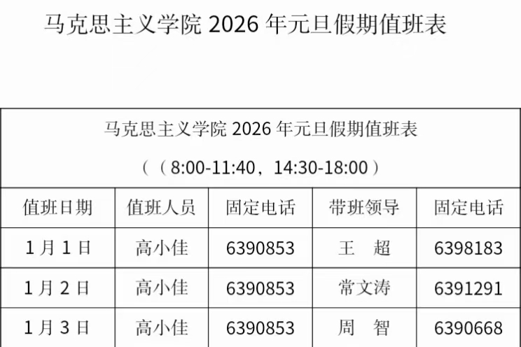 ok138cn太阳集团5292026年元旦假期值班表