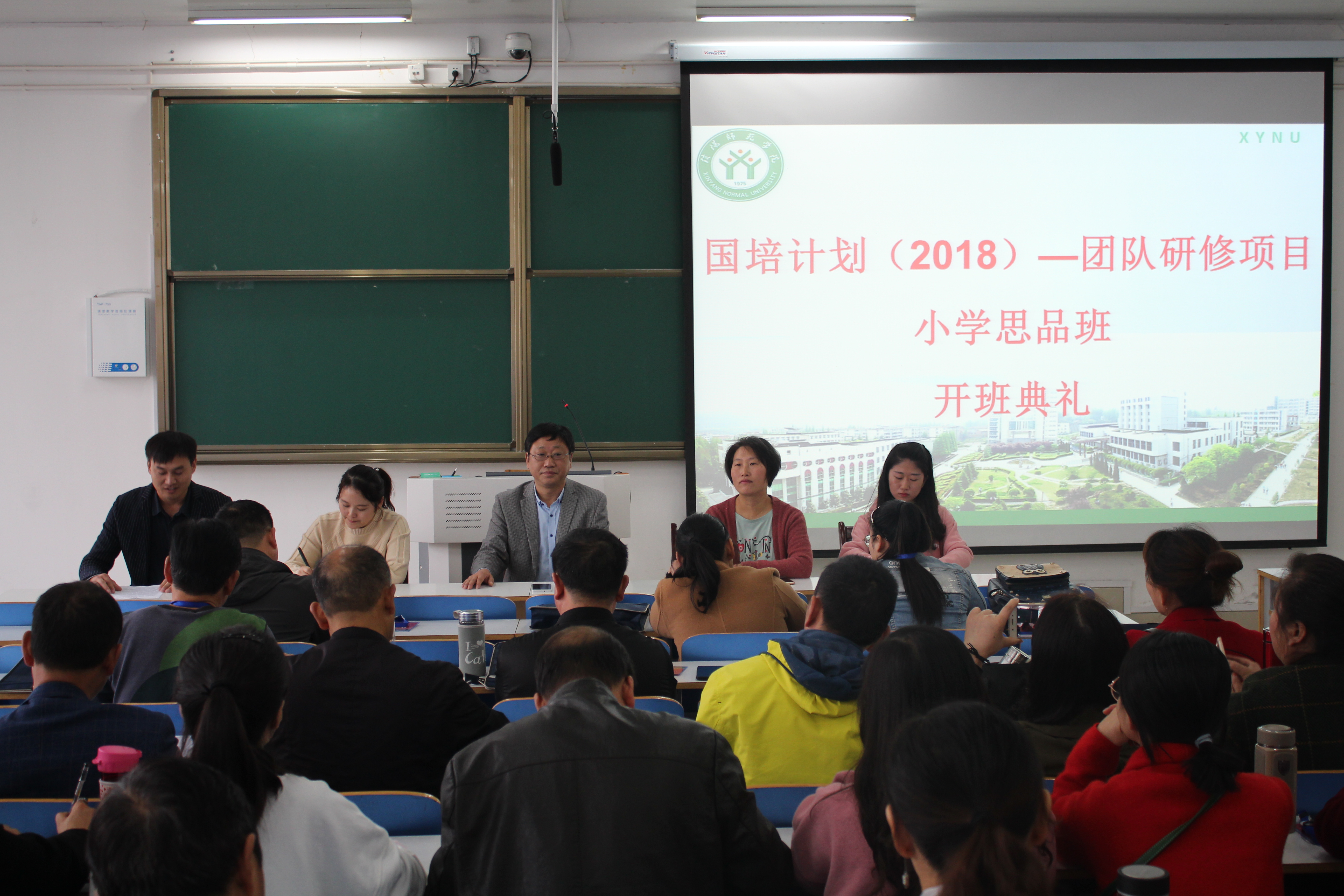 2018年10月19日上午,ok138cn太阳集团529在社科楼516教室召开国培计划(2018)—团队研修项目小学思品班的开班典礼。副院长程晋富,国培班班主任訾其伦、董婧及国培计划河南省乡村教师培训团队的全体教师共同参加了此次典礼。