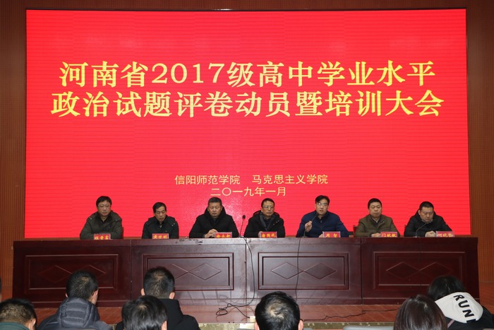 1月8日下午,我院在逸夫楼报告厅召开河南省2017级高中学业水平考试政治试题评卷动员暨培训大会。学院党委书记唐国战,党委副书记徐永新、何晓坚,副院长周智、黄世明、程晋富,当代马克思主义研究所副所长门献敏出席会议,200余名评卷人员参加了动员大会。大会由周智主持。