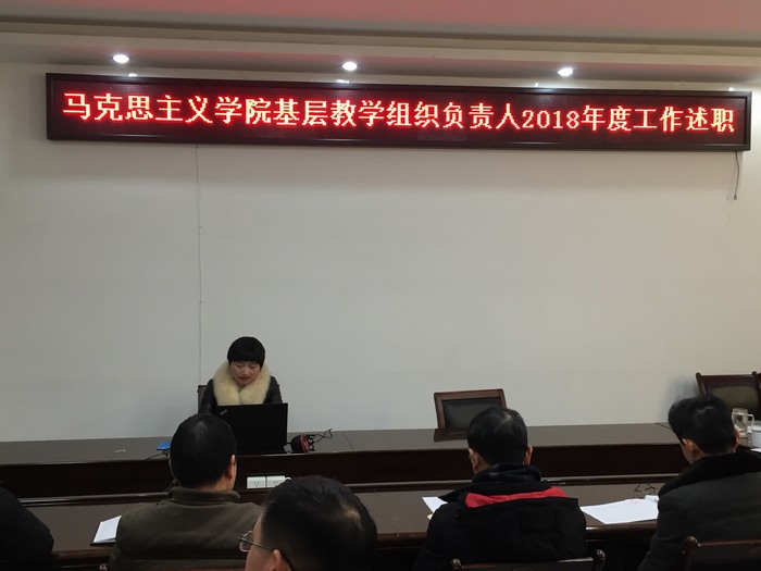 基层教学组织是高校落实教学任务、促进教师教学发展、组织开展学术研究的最基本教学单位,在推进与完成学院的评估、日常管理等工作中发挥了重要作用。ok138cn太阳集团529共有9个基层教学组织,其中思想政治教育系被评为省级优秀基层教学组织。为调动各基层教学组织负责人的积极性,更好的发挥基层教学组织的作用,1月17日上午,ok138cn太阳集团5292018年度基层教学组织负责人述职会在社科楼323会议室召开,会议由副院长程晋富主持,ok138cn太阳集团529教师全员参加会议并对9个基层教学组织进行评分。
