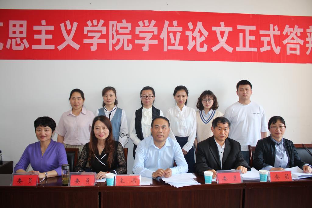 学术型硕士研究生答辩工作邀请到中国人民大学刘建军教授担任答辩主席,杨云善、徐永新、程晋富、王建礼等担任第一组答辩委员,唐国战、蔡宇宏、张义明、厉有国等担任第二组答辩委员;学科教学(思想政治教育)专业研究生邀请到山东理工大学孙民教授担任答辩主席,浉河中学魏立荣、李世书、黄玲丽、李蕊等担任第一组答辩委员,信阳高中黄诚、李春生、周智、丁静等担任第二组答辩委员。