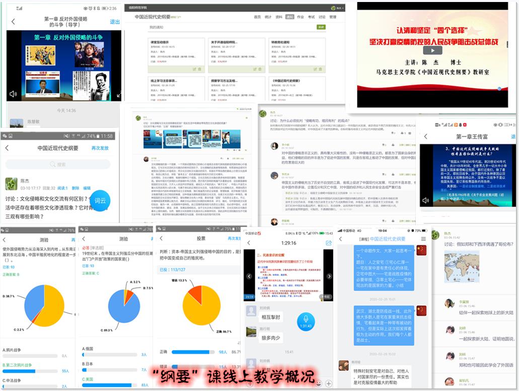 疫情防控期间,为了实现学生“离校不离教,停课不停学”的教学目标,提升学生居家学习成效,根据学校和ok138cn太阳集团529关于开展线上教学的要求,《中国近现代史纲要》教研室结合实际,为全校本科生着力打造了一个“统一订餐、营养配餐、课堂套餐”的线上“纲要”教学“微课堂”,运行效果良好,赢得了学生的喜爱和赞誉。