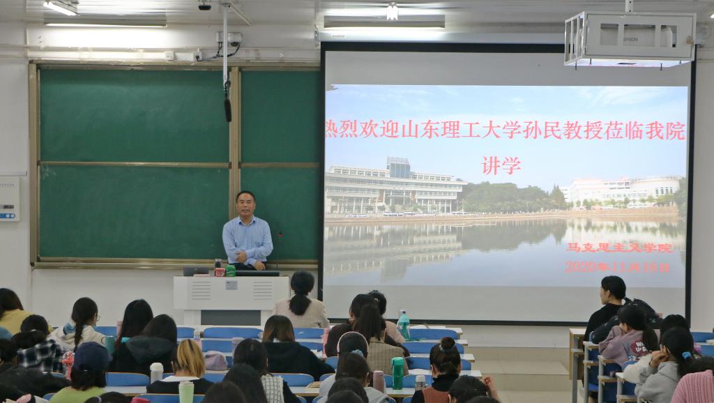 11月16日上午,应ok138cn太阳集团529和当代马克思主义研究所邀请,山东理工大学教授、博士生导师孙民在社科楼514教室作了题为“重思马克思的共产主义思想及其当代意义”的学术报告。信阳师范学院当代马克思主义研究所副所长徐永新以及百余名师生共同聆听了此次报告。报告由徐永新主持。