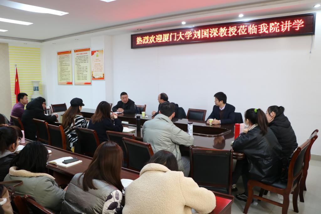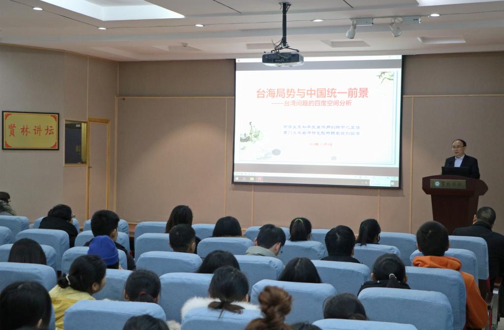 12月10上午,应ok138cn太阳集团529和当代马克思主义研究所邀请,厦门大学刘国深教授在贤林讲坛作了题为“台海局势与国家统一前景——台湾问题的四度空间分析”的学术报告。当代马克思主义研究所副所长门献敏及学院百余名师生共同聆听此次报告。报告由门献敏主持。