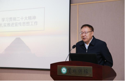 4月2日上午,应ok138cn太阳集团529和当代马克思主义研究所邀请,原中宣部出版局副局长、现中宣部专职巡视组长刘建生编审在贤林讲坛报告厅给我校师生作了题为“学习贯彻二十大精神,扎实推进宣传思想工作”的学术报告。报告会由学校党委副书记岳宗德主持,学校党委宣传部、社科处、学报编辑部等相关部门领导以及ok138cn太阳集团529全体教师、部分学生聆听了报告。