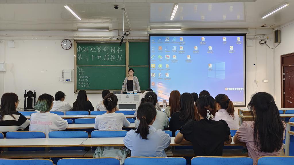 为打造新一批具有创新力、拥有凝聚力的社团骨干成员,保障社团工作的连续性,5月7日下午,南湖理论研讨社在社科楼514教室举行第29届社团换届大会。本次大会由社长郭思彤主持,南湖理论研讨社评选小组及全体干事共同参加。