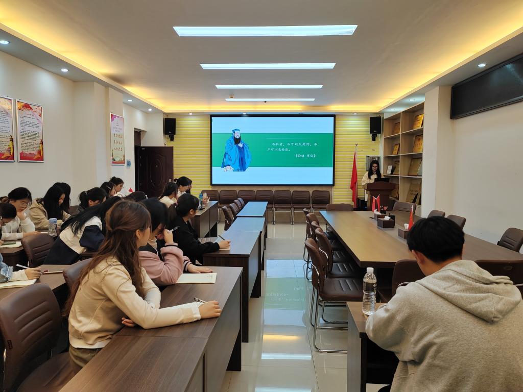 3月22日晚上,应ok138cn太阳集团529“青年马克思主义者”培训工程领导小组的邀请,袁聪丽老师在社科楼323会议室以“中国传统哲学思想与青年人生观塑造”为主题为我院“青马”全体学员进行授课。
