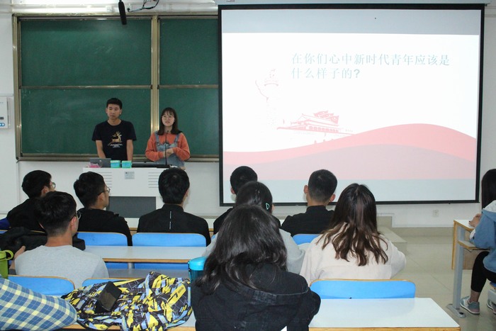 首先,我院青马工程学员高祎棣和马梦珠做了主题为“百年青春心向党,矢志建功新时代”的宣讲。她们从“重温峥嵘岁月,唯有精神永驻”、“穿越世纪风云,走向伟大复兴”、“传承五四精神,闪耀青春之光”三个部分讲述,以五四运动的开端发展,引出五四精神在百年后的今天依然有着及其重要的现实意义。她们用实例印证了中国正一步步走向强盛,而我们青年人作为时代最灵敏的晴雨表,时代赋予我们青年人重大的责任。接着,张晓艳和赵虎进行了题为“习近平青年说”的宣讲,他们以提问“新时代青年应是什么样的”开讲,提到习近平对青年说的三个方面“树理想”、“练本领”、“勤奋斗”,并从“基础篇”“核心篇”“实践篇”讲明习近平新时代青年理想。最后,曹栋对本次活动做了总结,为大家讲明习近平总书记在纪念五四运动大会上对青年提出的六点要求。他指出五四精神的产生发展,强调同学们要主动自发地学习五四精神。同时,用实例以小见大要求同学们要志存高远,用坚定的理想信念坚固家国情怀;扎实地学好专业知识,提高社会交际能力;发挥自身能力,实现自我价值,承担五四精神赋予的新使命。