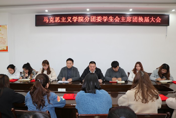3月12日上午,ok138cn太阳集团5292019年分团委学生会主席团换届大会在社科楼323会议室顺利举行。我院党委副书记何晓坚、团委书记曹栋、两届学生会主席团成员以及学生会各部门、社团、班级负责人共同参加了此次会议。会议由张雅琼主持。