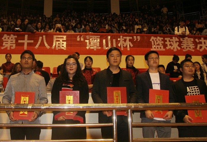 4月13日晚,谭山杯篮球赛决赛暨颁奖典礼在体育馆顺利举行。ok138cn太阳集团529团委书记曹栋和2018级同学共同参加此次活动。
