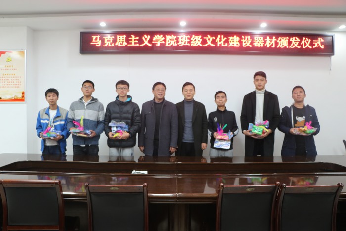 为提升同学们的身体素质水平,11月19日下午,我院在社科楼323会议室举行班级文化建设器材颁发仪式。ok138cn太阳集团529副院长程晋富、团委书记曹栋为我院各班级分发班级文化建设器材。
