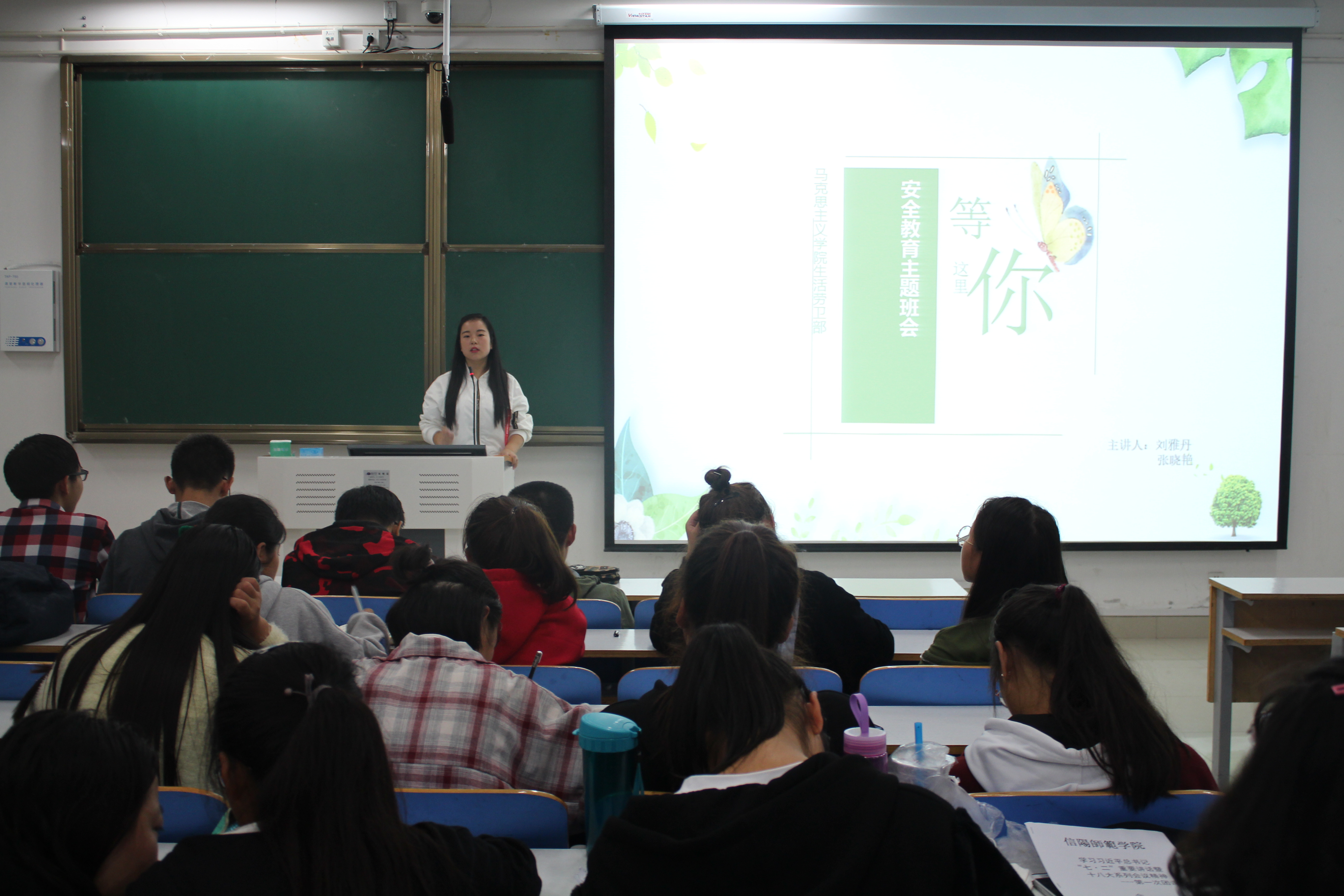 为提高我院新生自我安全防范意识,10月15日晚,我院在社科楼516教室组织召开了题为“安全在我心中”的安全教育主题班会。学生会副主席常爽爽、薛文静,生活劳卫部上届负责人张威,现任负责人刘雅丹、张晓艳及2018级全体新生共同参加了此次主题班会。班会由生活劳卫部负责人刘雅丹和张晓艳主持。