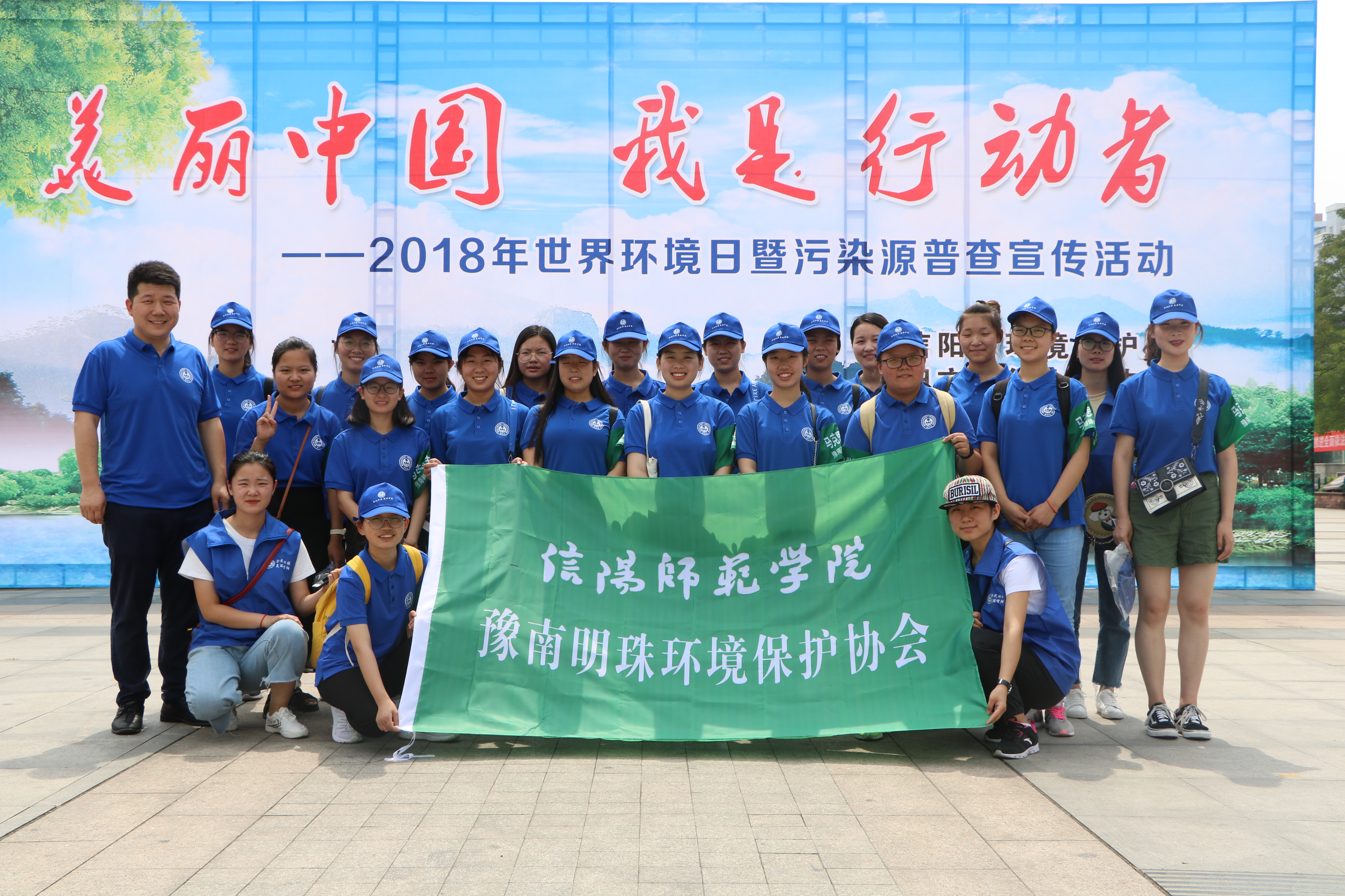 为进一步推进生态文明建设相关宣传工作,形成全社会共同支持和关注生态保护的强大合力,6月5日,由信阳市环保局、信阳市中级人民法院、农工党信阳市委办公室和九三学社信阳市委办公室联合举办的“美丽中国,我是行动者”2018年第47个世界环境日暨污染源普查宣传活动在信阳市体彩广场举行。我院豫南明珠环境保护协会30名志愿者共同参加此次活动。