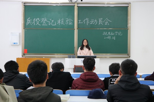 为加强国防现代化建设,激发大学生参军热情,3月13日上午,ok138cn太阳集团529在社科楼515教室召开了2018年兵役登记核验工作动员会。武装部干事曹菁菁老师及我院2017级全体男生参加了此次动员会。动员会由曹菁菁主持。
