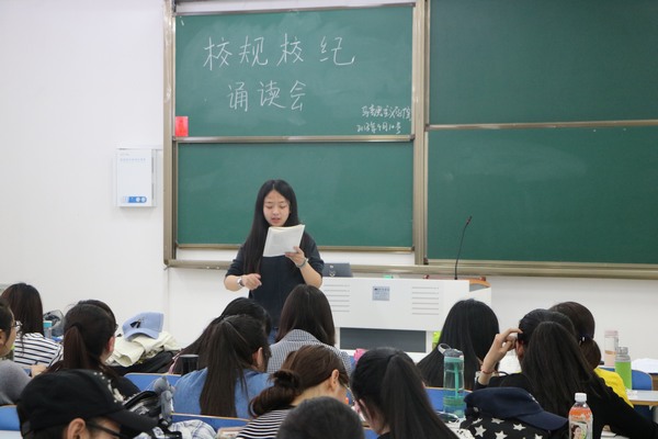 为深入贯彻学习《信阳师范学院学生管理相关规定》文件的精神,4月10日,我院2015级、2016级全体学生在社科楼514、515教室举行校规校纪诵读学习活动。