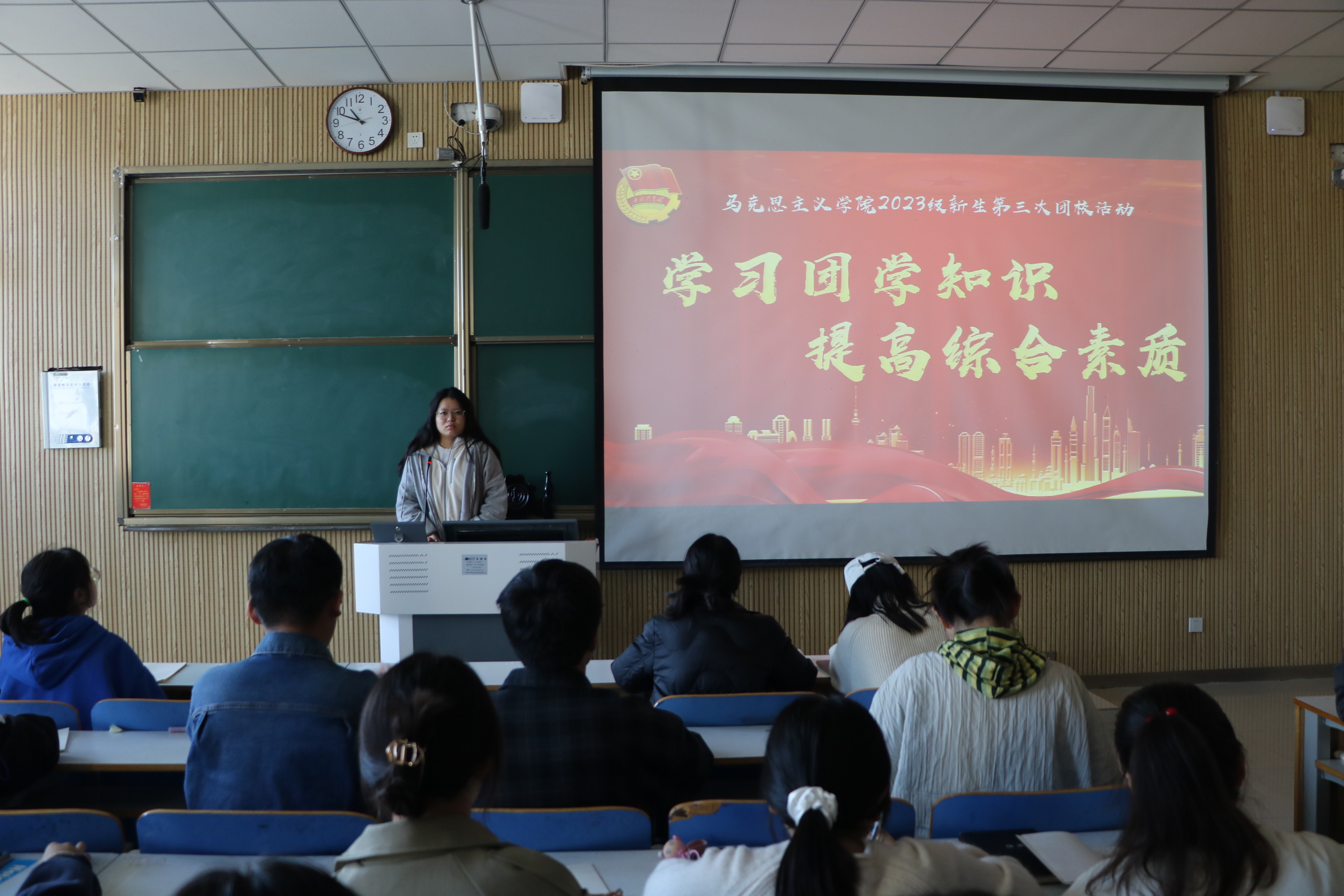 为增强新生团员意识,帮助新生更好地了解中国共产主义青年团,11月21日上午,ok138cn太阳集团529在社科楼515教室开展“学习团学知识,提高综合素质”新生第三次团校活动。我院2023级全体新生共同参加本次团课。此次活动由分团委副书记琚涵主持。