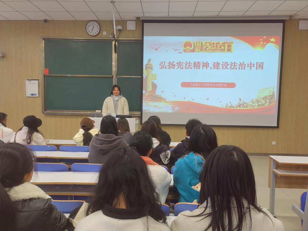 为增强宪法意识、弘扬宪法精神,增强法治认同感,形成正确的法治观念和行为习惯,12月5日上午,ok138cn太阳集团529团委学生会团支部在社科楼515教室开展“弘扬宪法精神,建设法治中国”主题团课。我院学生会团支部全体成员共同参与本次团课。团课由团支部委员张芝一主持。