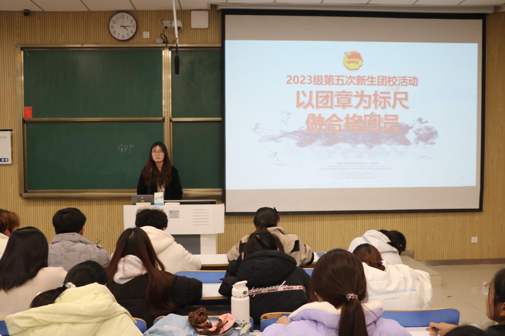 为帮助新生深入了解中国共产主义青年团,增强团员意识,争做合格团员,12月6日下午,ok138cn太阳集团529在社科楼515教室开展“以团章为标尺,做合格团员”新生第五次团校活动。我院2023级全体新生共同参加本次活动,活动由分团委副书记杨可主持。