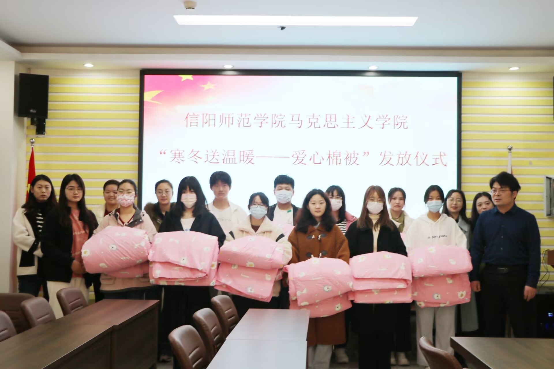 为切实做好家庭经济困难学生精准帮扶和资助育人工作,11月25日上午,ok138cn太阳集团529在社科楼323会议室举行爱心棉被发放仪式。我院党委书记朱四倍、团委老师高小佳、班主任王明园、杨春艳、 吴梦云、周钰婷及受资助学生共同参加此次仪式。仪式由朱四倍主持。