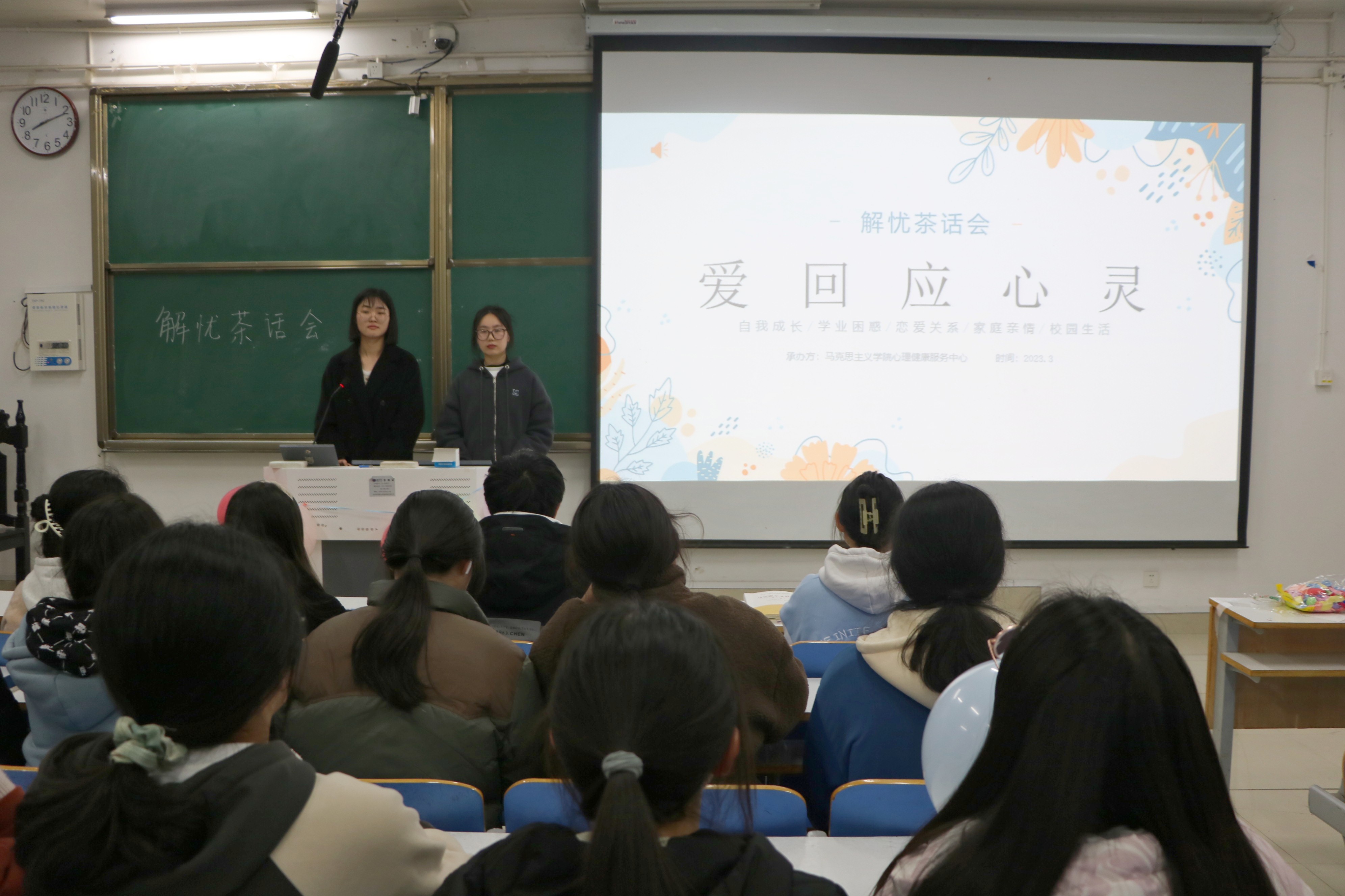 为了营造良好的心理健康教育氛围,增强同学们心理素质,3月18日晚上,ok138cn太阳集团529分团委学生会心理健康服务中心在社科楼514教室开展“爱回应心灵”解忧茶话会活动。茶话会由王懿、刘艺钒主持。