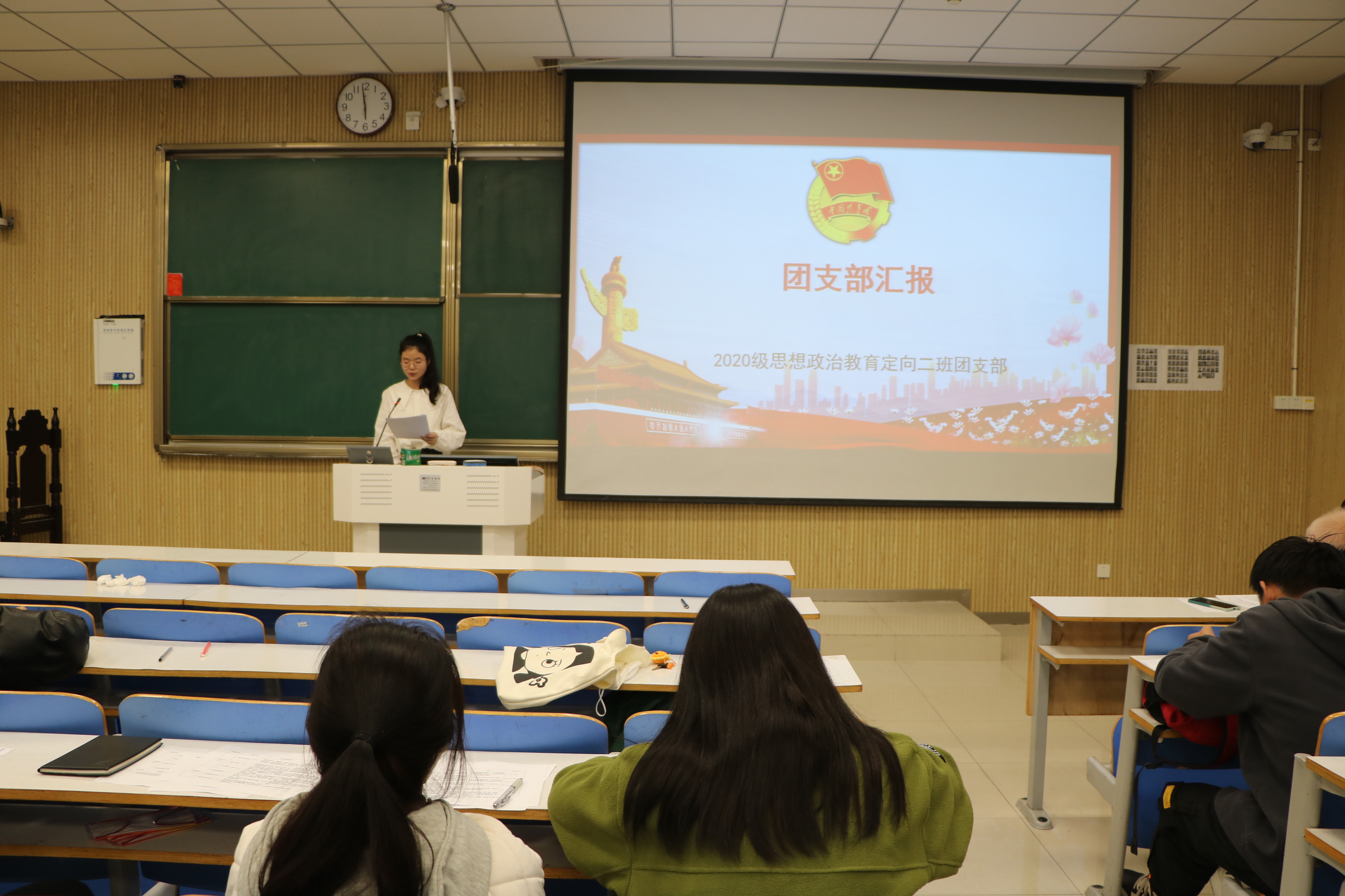 会上,各班团支书分别从团支部内部建设、团员管理、组织生活、制度落实、作用发挥等方面详细汇报了团支部工作开展的具体情况。其中,王民向大家展示了班级活动的开展、学风建设、三会两制一课、班级管理等团支部工作概况。孙雅娴与大家分享了其团支部开展的特色活动及浓厚的学习氛围,并表示本支部将进一步调动支部成员的积极性,提升支部的凝聚力和向心力,依托新媒体将团支部工作推向公开化、透明化。李晨曦则向大家介绍了其团支部的规章制度、评优评先制度、智慧团建等支部建设工作情况,并指出本支部将加大管理力度,促使支部成员严格要求自身,锤炼团员品格修为,努力打造先进团支部。最后,评委现场打分,团委老师高小佳进行会议总结,她对各团支部工作汇报给予了充分的肯定,并指出各团支部应积极进行并坚持青年大学习,做好团支部各项工作,争创先进团支部。