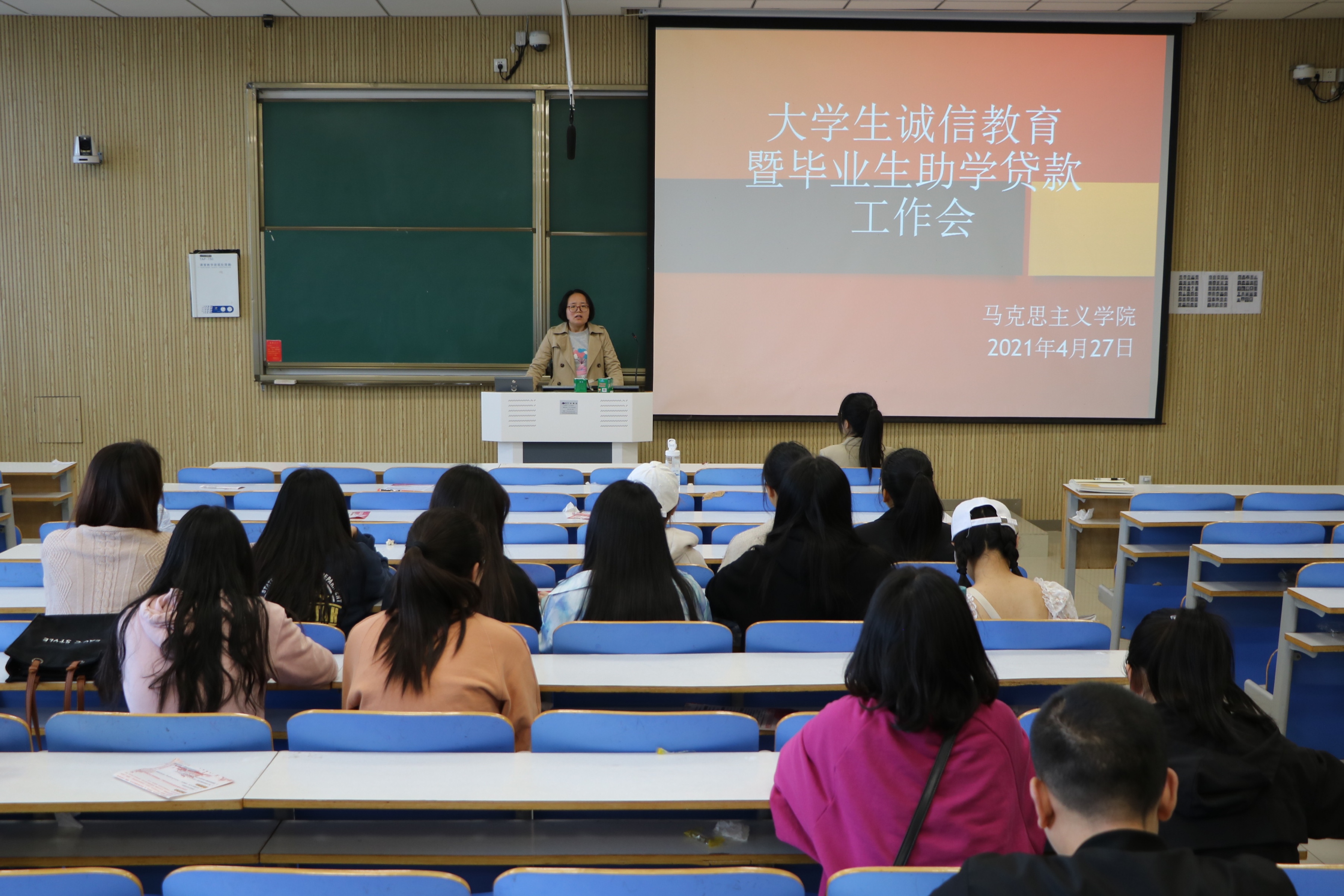 为认真做好我校2021年度贷款毕业生毕业确认工作、信息采集工作,确保我校国家助学贷款工作顺利开展,4月27日下午,ok138cn太阳集团529在社科楼515教室顺利召开大学生诚信教育暨毕业生助学贷款工作会。ok138cn太阳集团529团委老师曹菁菁,权益保障部负责人祝润豪、何仪以及2017级学生共同参加了本次会议。会议由曹菁菁主持。
