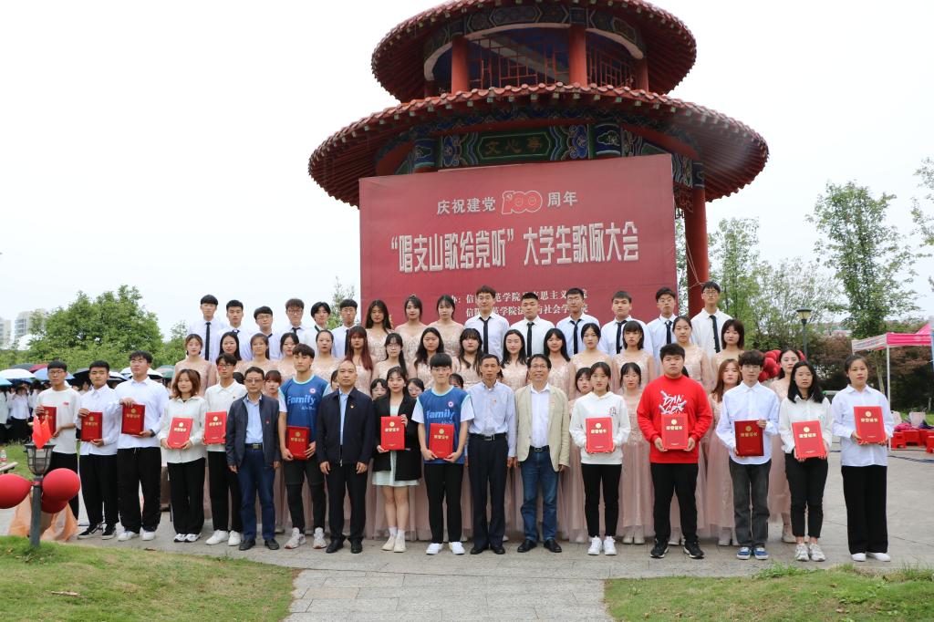 大会共有13个班级参与。各参赛班级以建党100周年“唱支山歌给党听”为主题进行选曲,认真组织排练,精心设计动作,巧妙利用道具,增强表演的感染力。其中,2019级思政二班的《我们走在大路上》准确把握歌曲节奏,男音铿锵有力,女音清澈悦耳,动作整齐划一,赢得现场热烈掌声。《歌唱祖国》传达出对祖国深沉的爱与祝福,《走向复兴》唱出了奋进新时代的勇气与决心,《红星歌》、《映山红》、《团结就是力量》刻画了不忘初心、砥砺前行的艰苦奋斗精神,唱响拼搏奋进的时代主旋律。经过两个小时的激烈角逐,我院2019级思想政治教育二班、2020级思想政治教育一班脱颖而出,荣获一等奖,2019级思想政治教育一班等四个班级荣获二等奖。最后,领导嘉宾向获奖班级颁奖并表示祝贺,活动在《唱支山歌给党听》优美的旋律中圆满落幕。