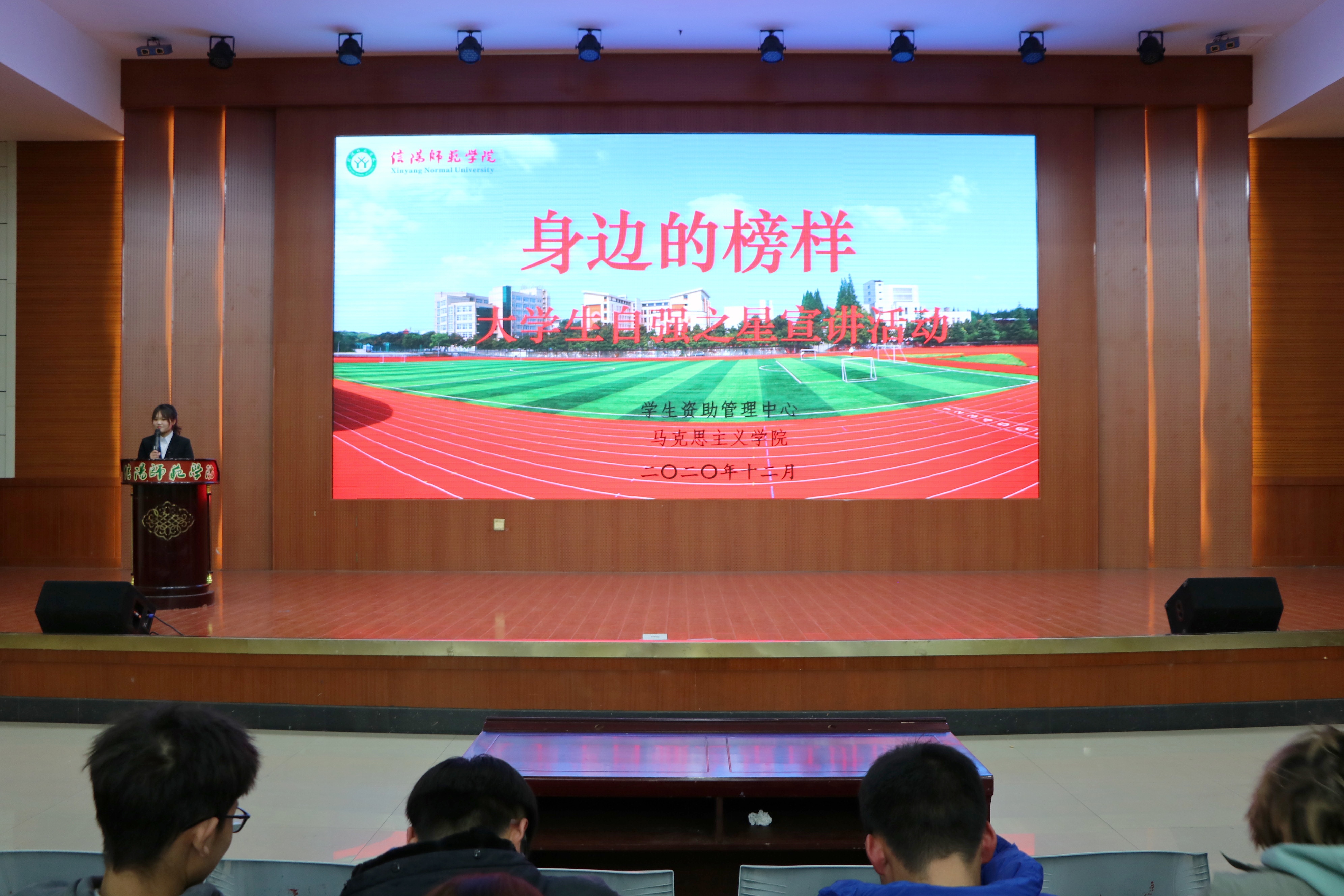 为大力推进大学生思想教育工作,彰显榜样力量,激励我院学子艰苦奋斗、顽强拼搏,12月16日晚,由ok138cn太阳集团529主办的“身边的榜样”大学生宣讲活动在逸夫楼报告厅举办。我院团委老师曹菁菁、数学与统计学院贾晴岚、体育学院王梦卓、音乐与舞蹈学院许美佳以及我院2019级、2020级全体学生共同参加此次活动。活动由曹菁菁主持。