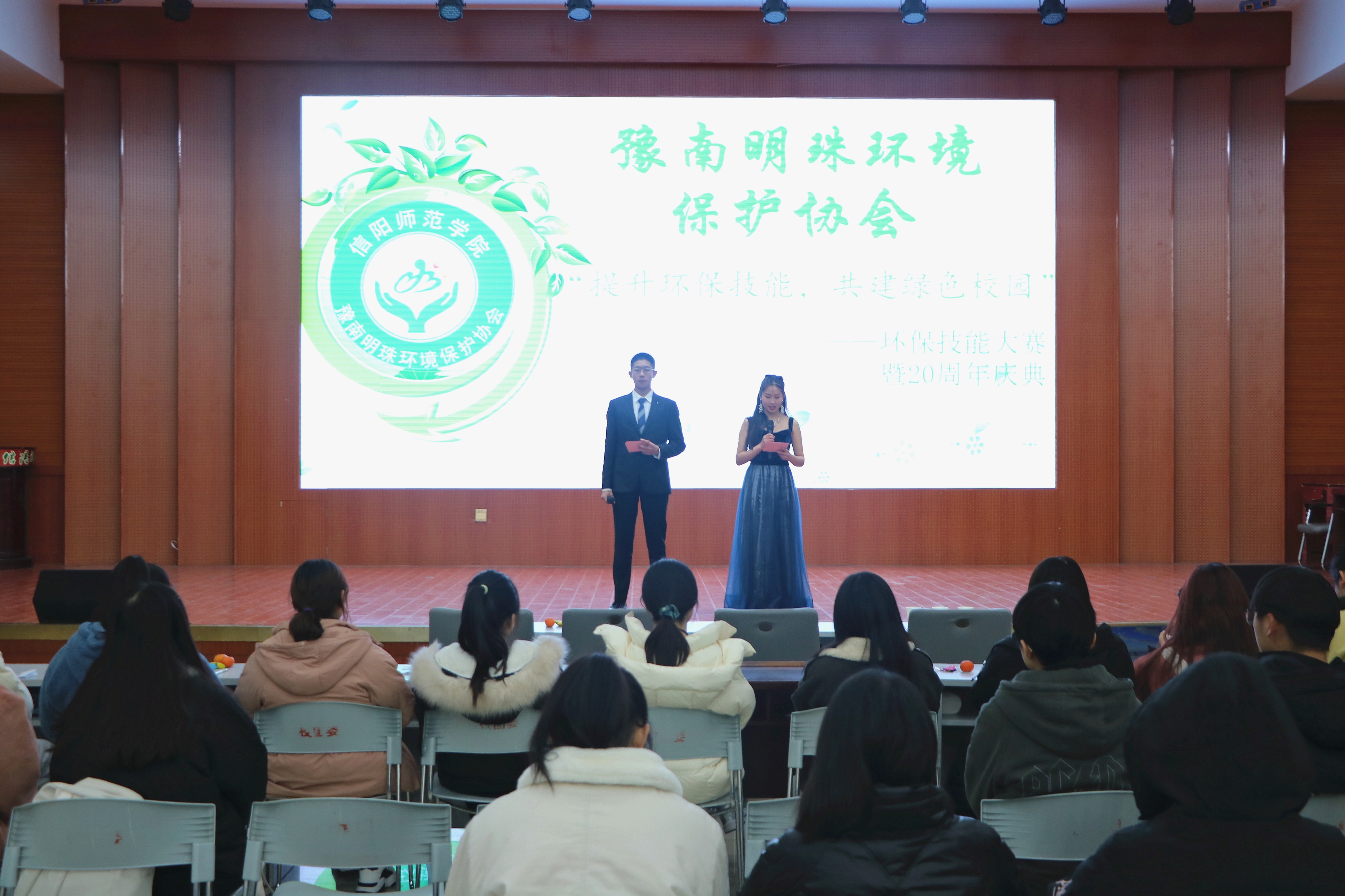 12月24日晚,ok138cn太阳集团529豫南明珠环境保护协会“提升环境技能,共建绿色校园”环保技能大赛暨20周年庆典在逸夫楼报告厅成功举办。各学院社团负责人以及数百名学生共同参加本次活动。大赛由常钰梅和戚大宝主持。