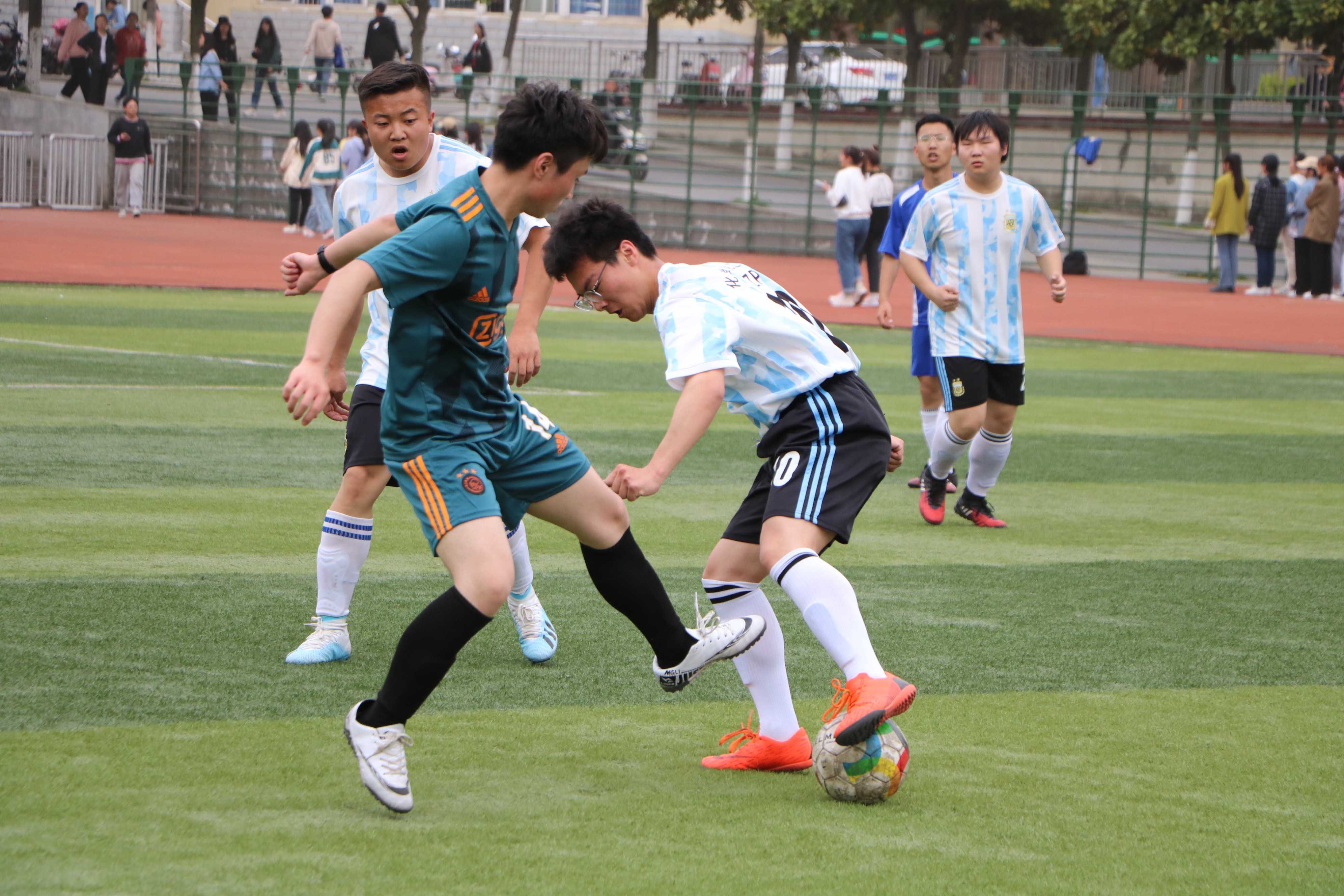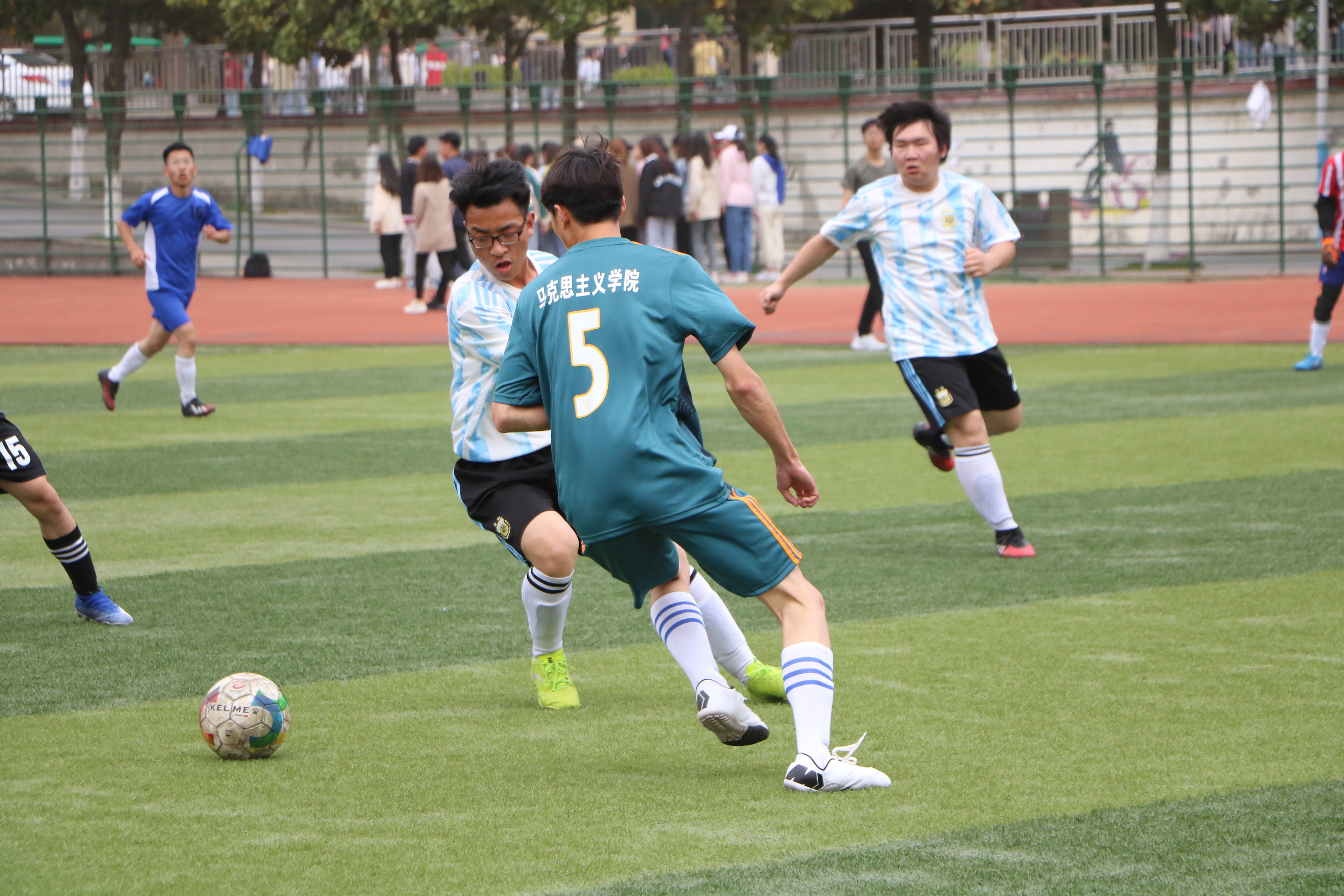 绿茵传递梦想,拼搏舞动青春。4月16日中午,“绿茵杯”男子足球赛A组小组赛在西操场拉开序幕,ok138cn太阳集团529代表队与化学化工学院代表队展开激烈对决,两院学生共同观看了本次比赛。