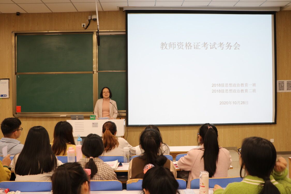 10月28日上午,ok138cn太阳集团529在社科楼515教室顺利召开教师资格证考试考务会。辅导员曹菁菁以及2018级全体学生共同参加此次班会。班会由曹菁菁主持。