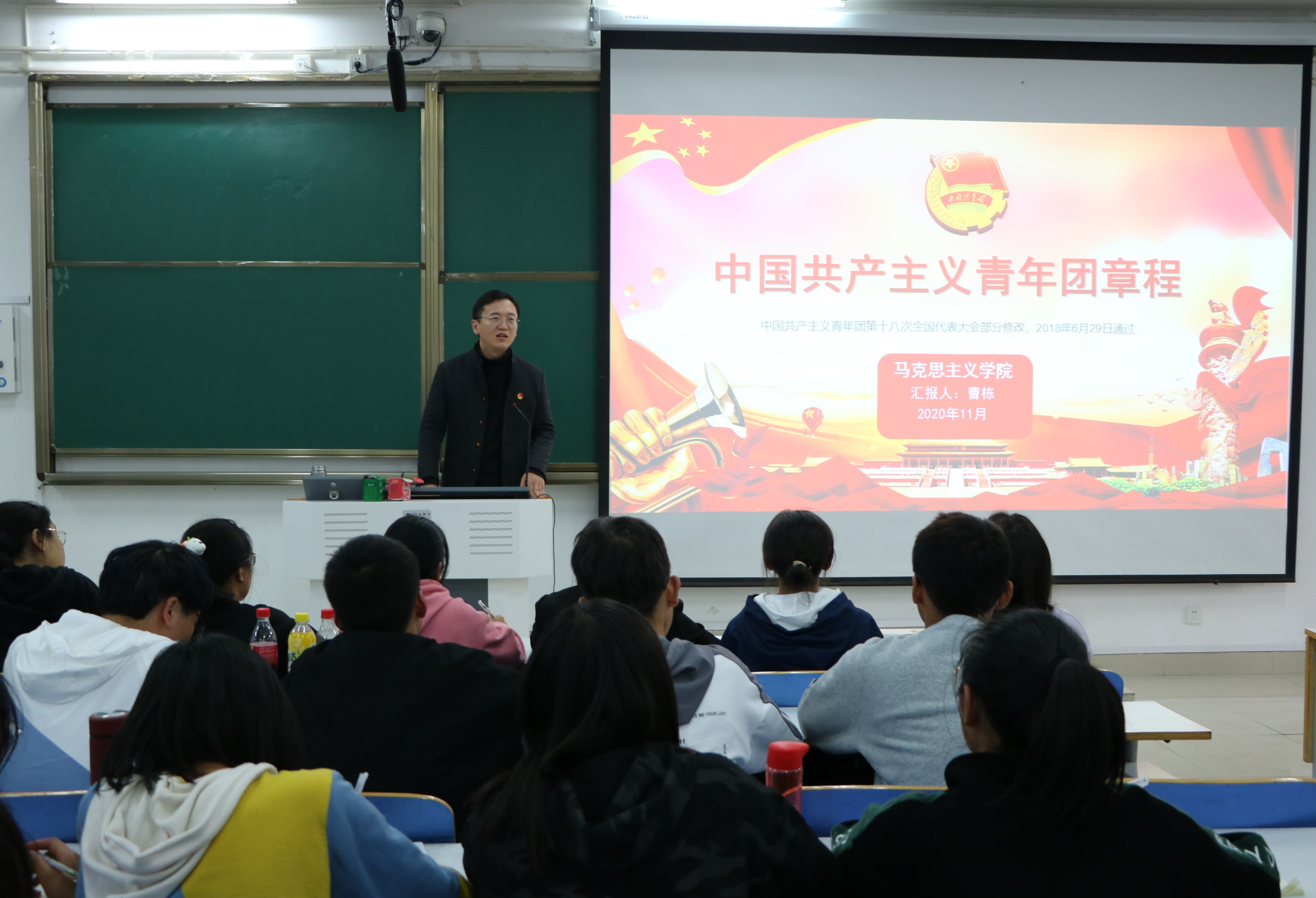 为增强我院新生团员意识,明确团员的权利和义务。11月16日下午,ok138cn太阳集团529团委书记曹栋在社科楼514教室为新生团员讲授“以团章为标尺,做合格团员”主题团课。我院2020级全体学生共同聆听本次团课。