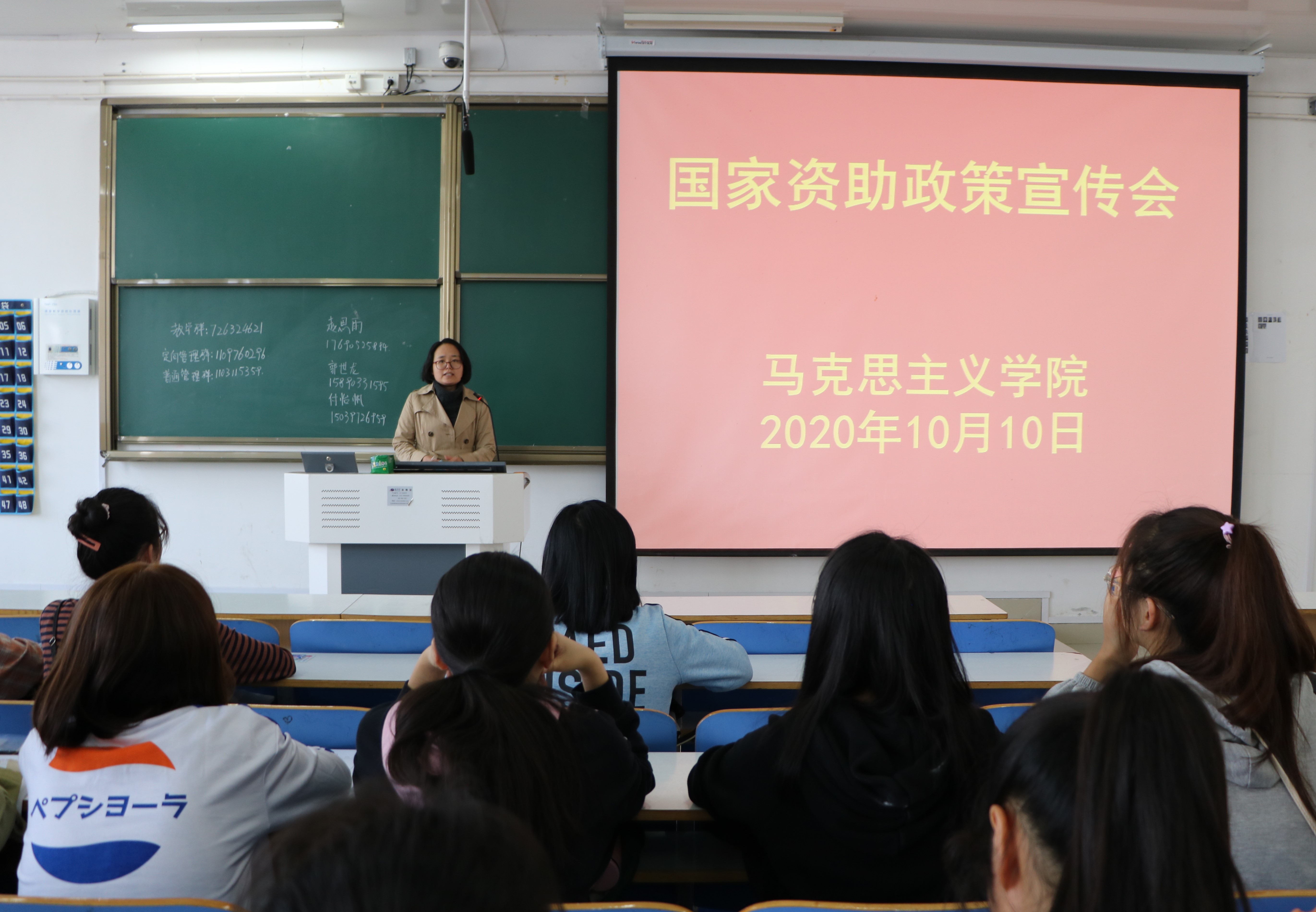 为深入贯彻落实国家资助政策,助力学生资助工作有效开展,10月10日下午,ok138cn太阳集团529分别在社科楼515、516教室开展国家资助政策暨国家助学贷款政策宣传会。我院资助专员曹菁菁、学贷负责人祝润豪、何仪以及2020级全体新生共同参加了本次宣传会。