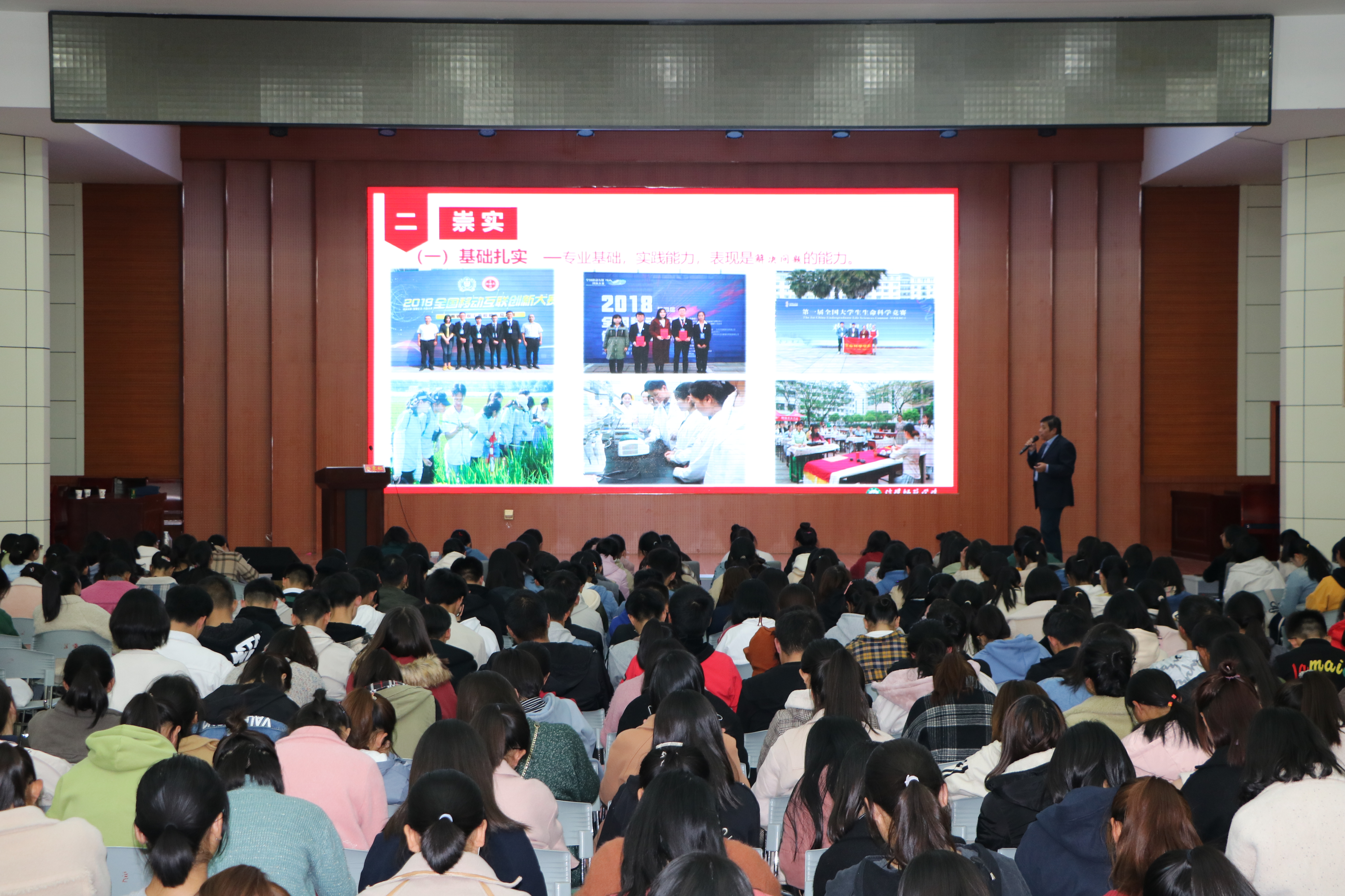 11月19日下午,生命科学学院党委副书记杨霁虹在逸夫楼报告厅为我院新生团员讲授题为“校训引领我成长”的主题团课。ok138cn太阳集团529团委书记曹栋、化学化工学院团委书记邓耀辉,ok138cn太阳集团529、化学化工学院全体新生团员共同聆听本次团课。