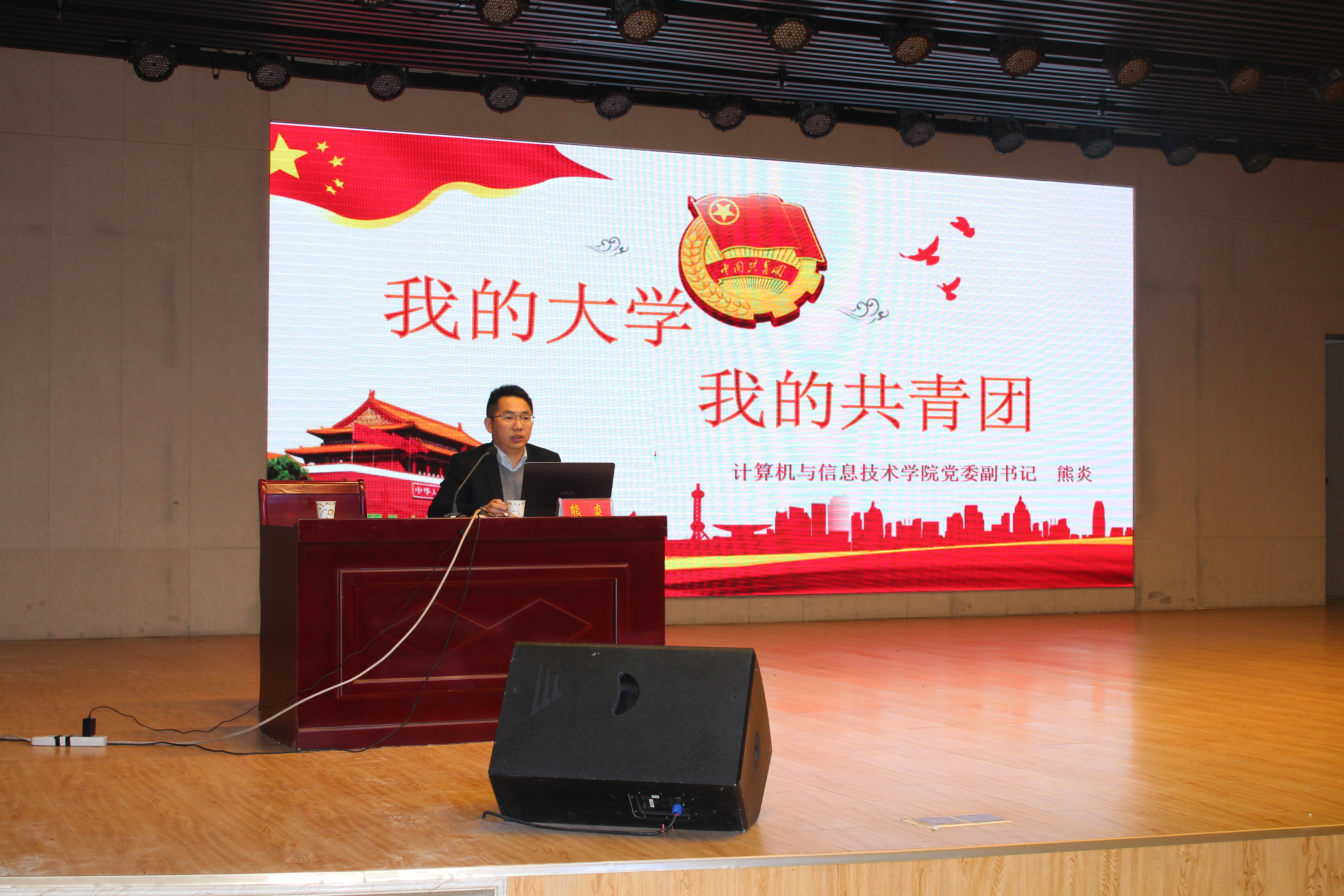 青年兴则国家兴,青年强则国家强。11月22日晚,计算机与信息技术学院党委副书记熊炎在理科楼报告厅为ok138cn太阳集团529和化学化工学院新生团员讲授题为“我的大学,我的共青团”的主题团课。ok138cn太阳集团529团委书记曹栋、化学与化工学院团委老师赵方方以及两院新生团员共同聆听本次团课。