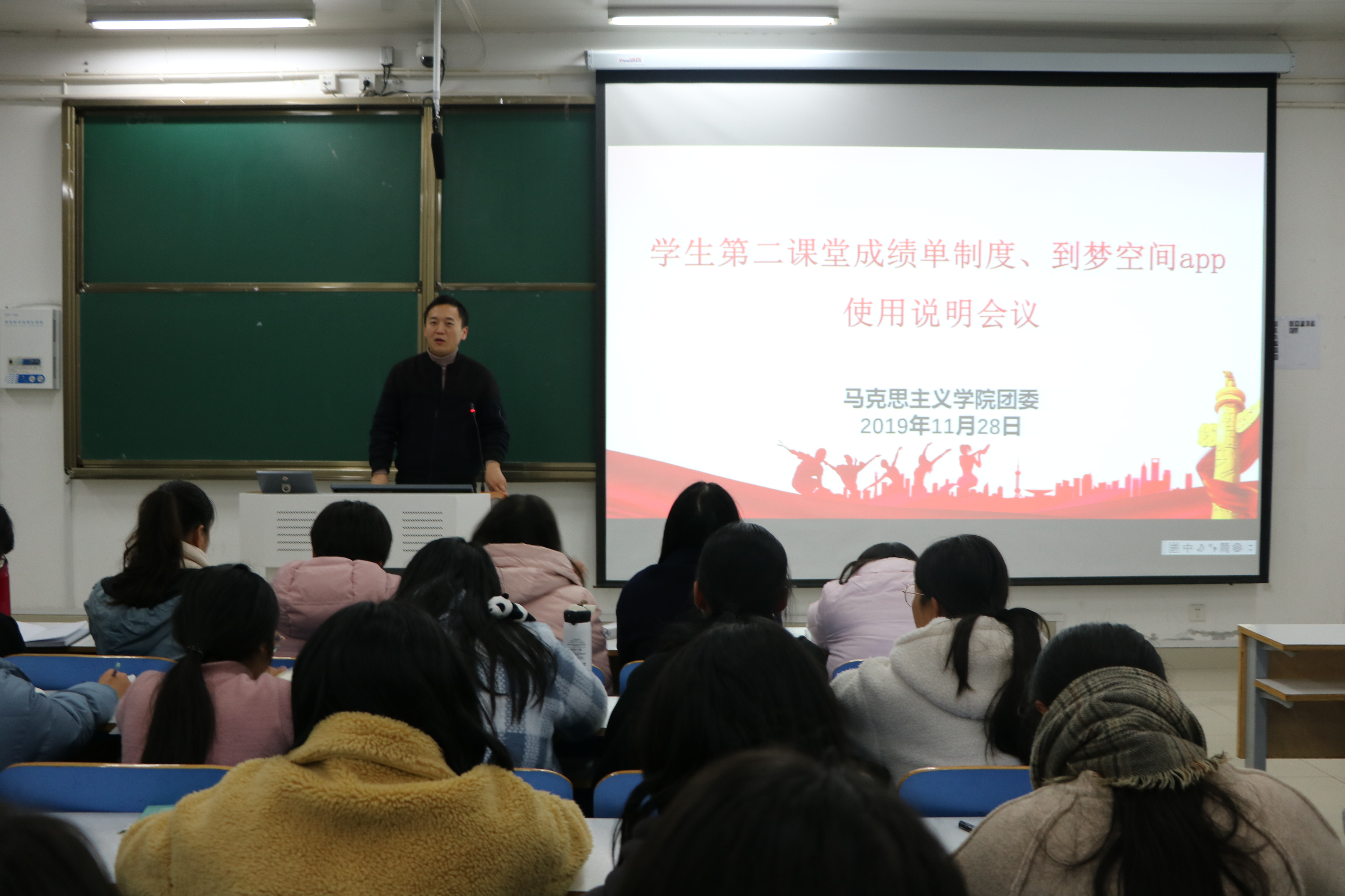 为帮助同学们熟悉并掌握“到梦空间”软件的使用规则,发挥第二课堂的辅助作用,11月28日下午,ok138cn太阳集团529团委在社科楼516教室召开第二课堂成绩单制度与“到梦空间"软件使用说明会。ok138cn太阳集团529团委书记曹栋、学生会主席团成员、学院到梦空间负责人及2019级全体学生共同参加本次会议。会议由曹栋主持。